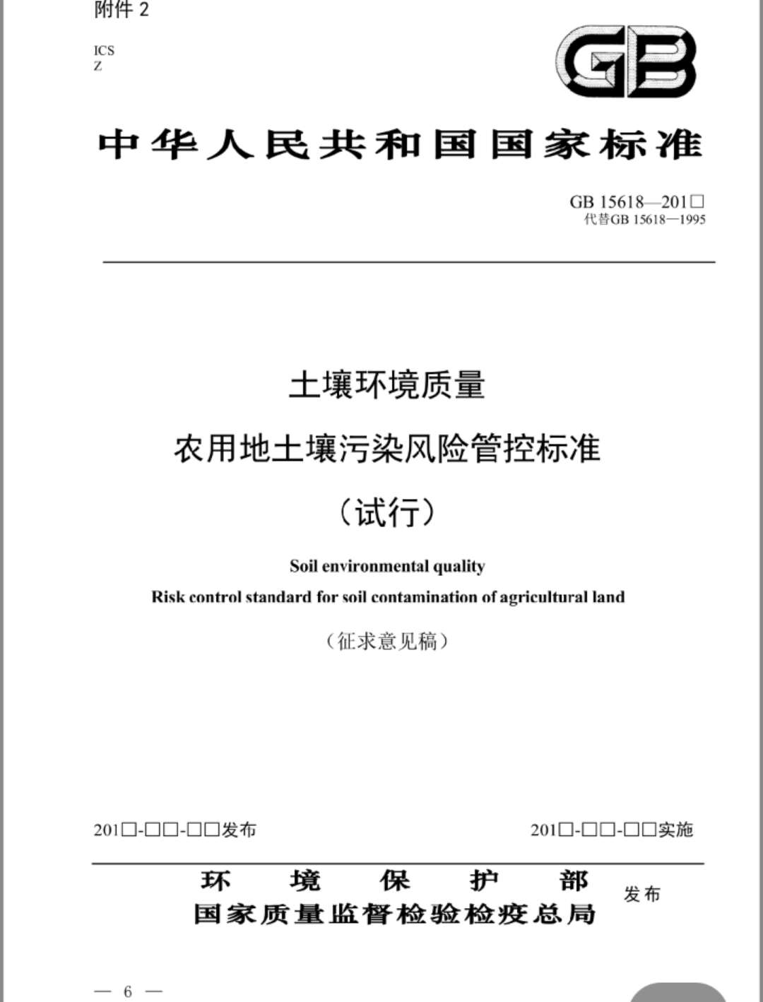 ——标准名称由《土壤环境质量标准》调整为《土壤环境质量 农用地土壤污染风险管控标准(试行)》;