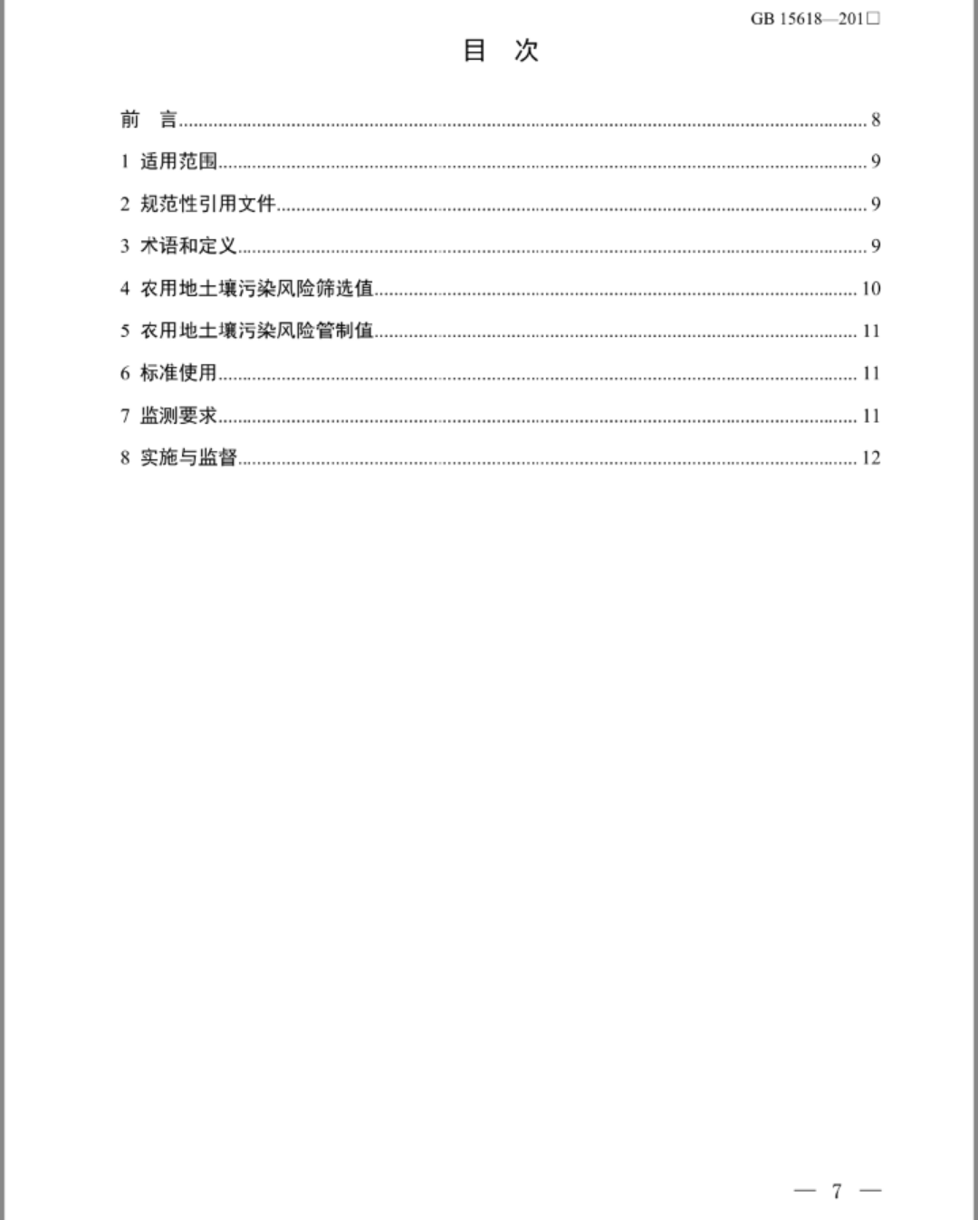 本标准规定了农用地土壤污染风险筛选值和管制值,以及监测、实施与监督要求。