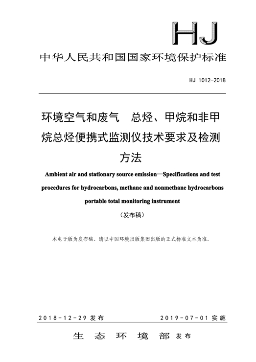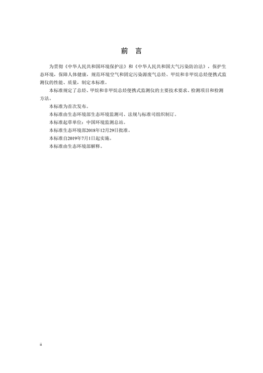 - 为贯彻《中华人民共和国环境保护法》和《中华人民共和国大气污染防治法》,保护生态环境,保障人体健康,规范环境空气和固定污染源废气总烃、甲烷和非甲烷总烃便携式监测仪的性能、质量,制定本标准。