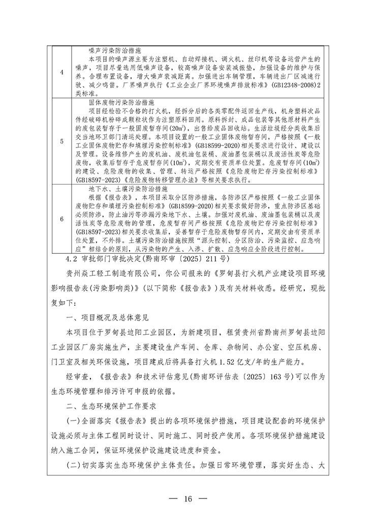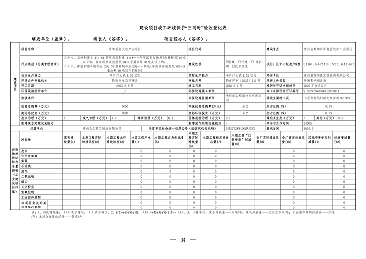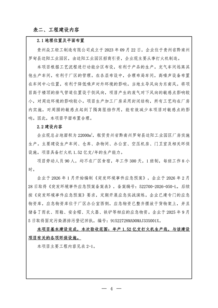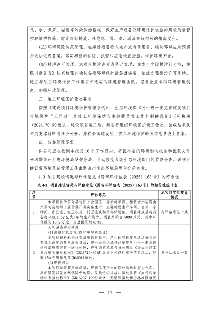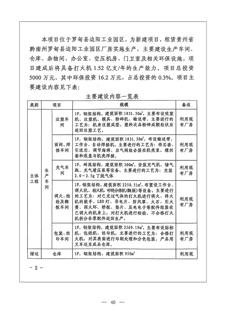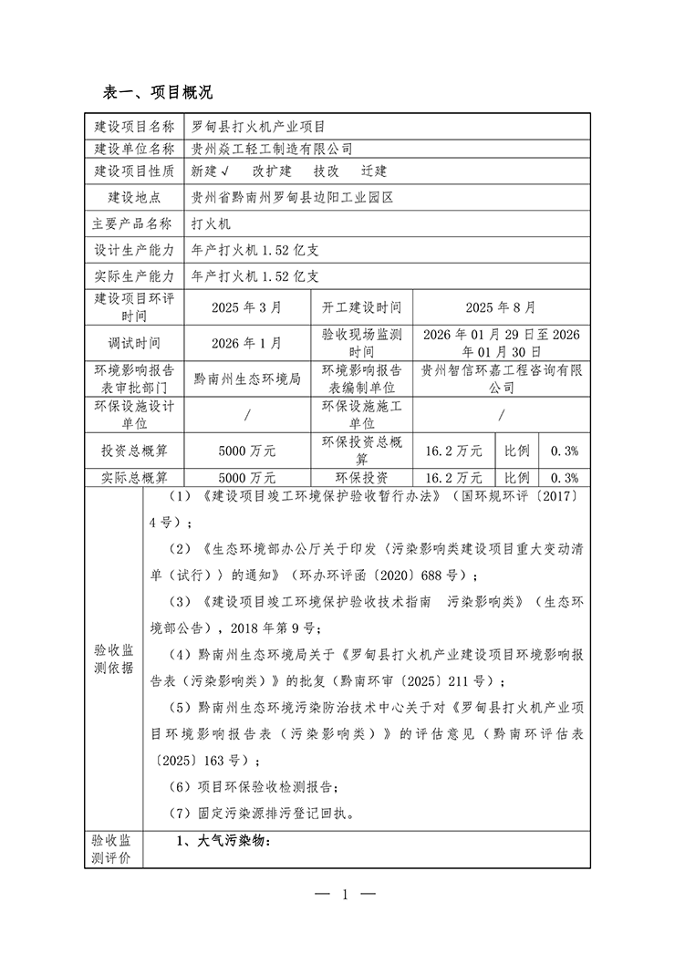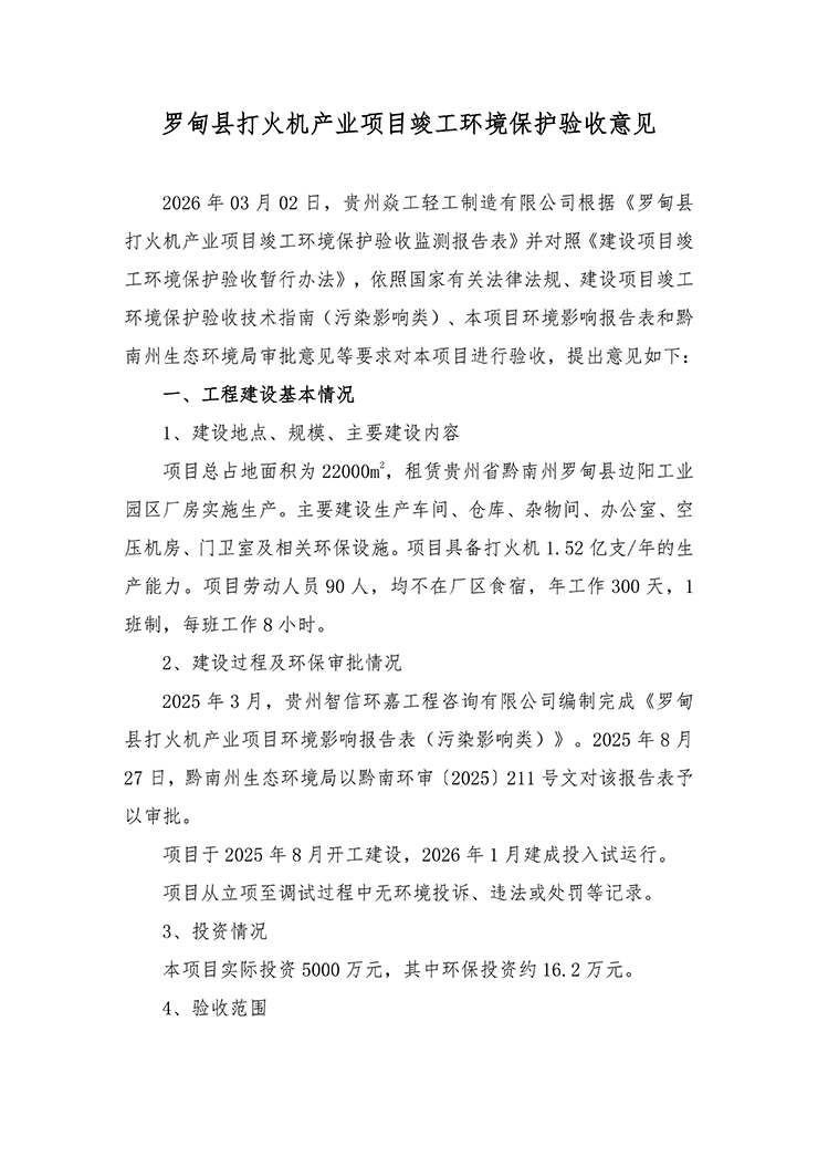 罗甸县打火机产业项目竣工环境保护验收监测报告表公示