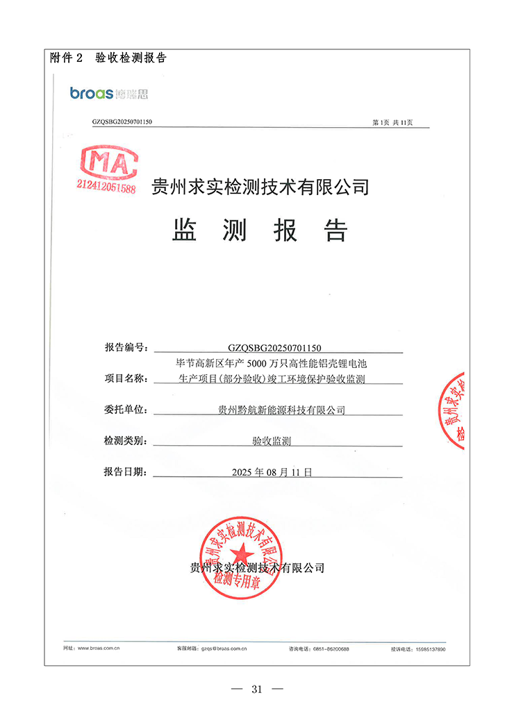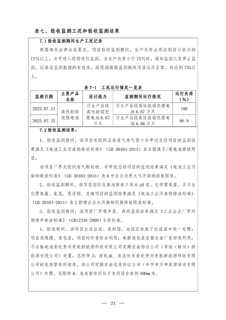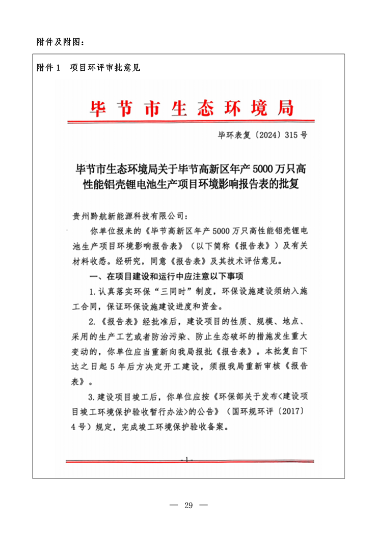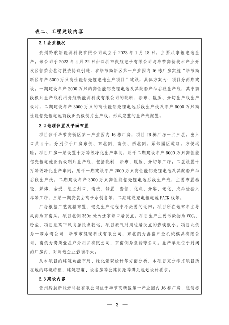 项目名称:毕节高新区年产5000万只高性能铝壳锂电池生产项目(部分验收)
