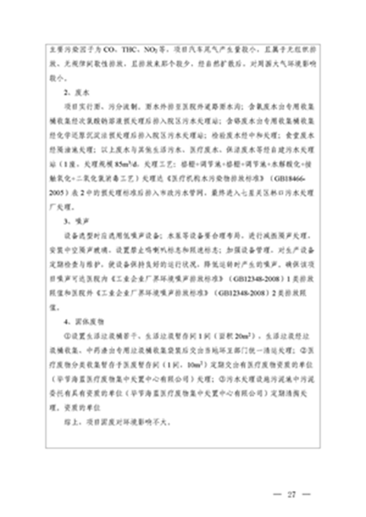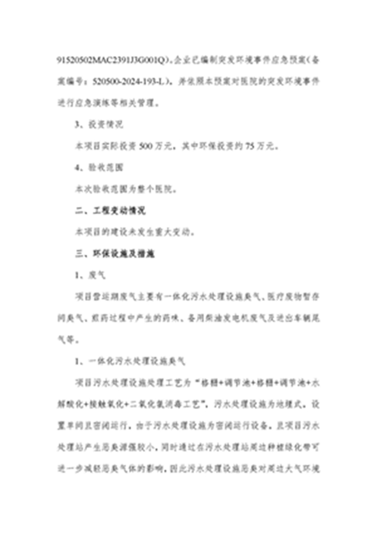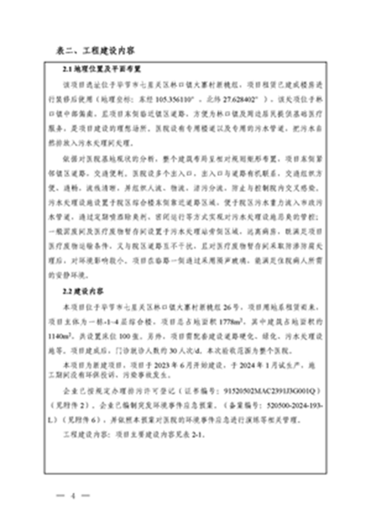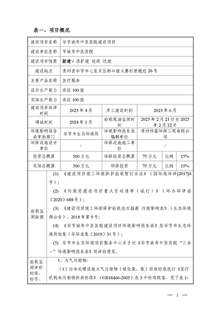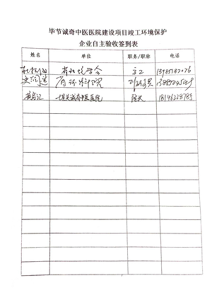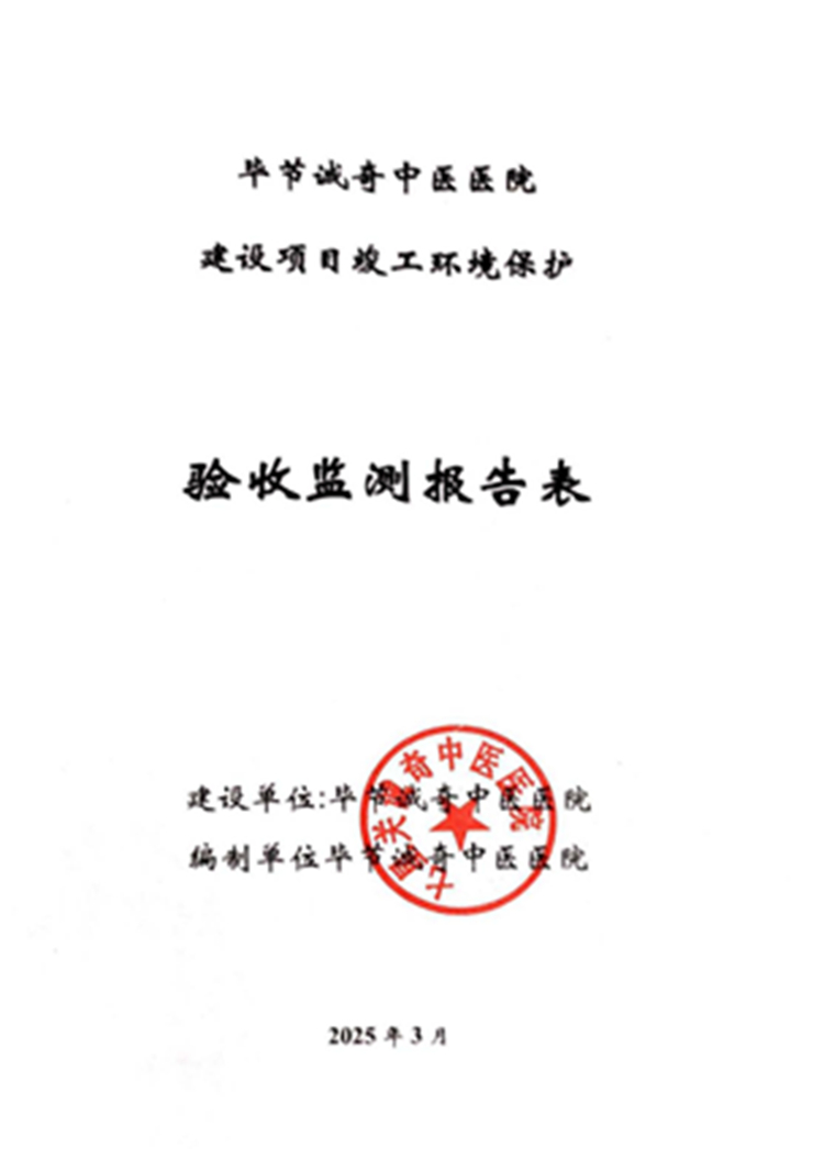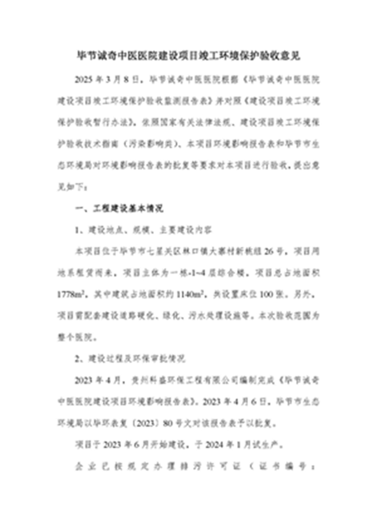 毕节诚奇中医医院建设项目竣工环境保护验收监测报告公示