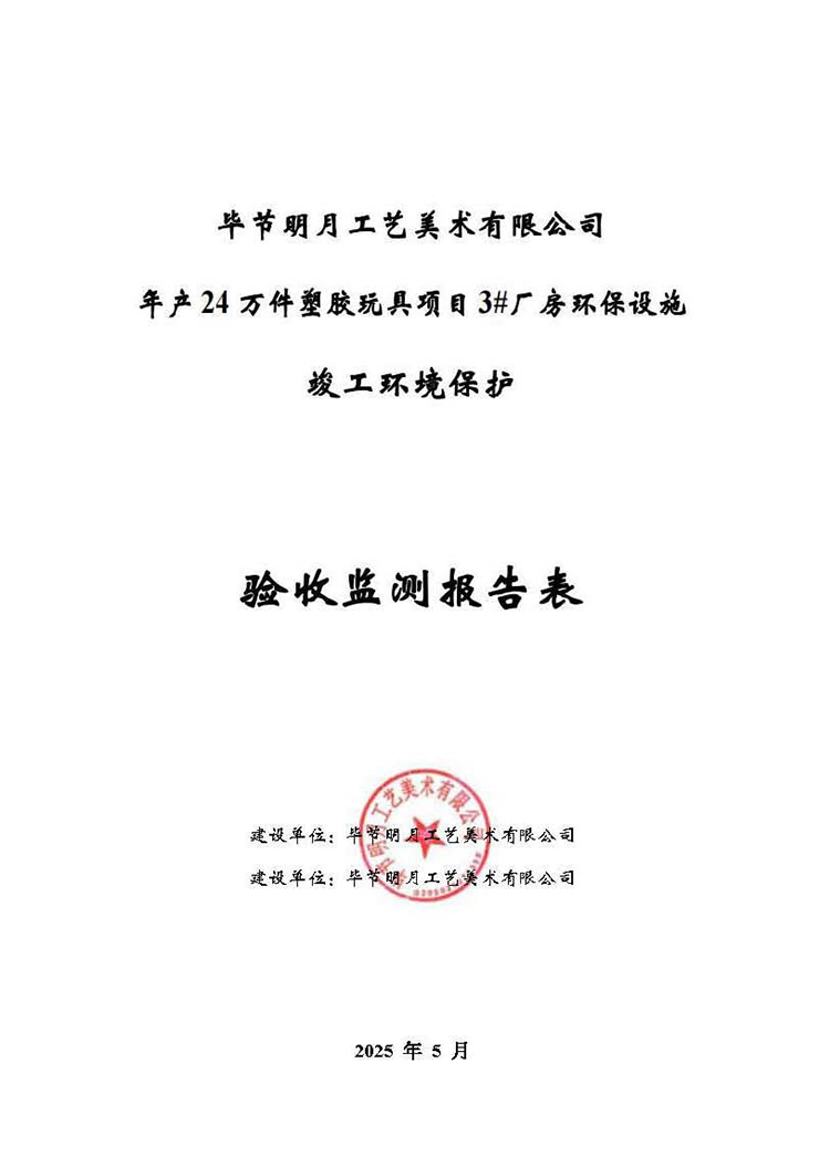 根据《国务院关于修改<建设项目竣工环境保护管理条例>的决定》(国务院令第682号),以及环保部《关于发布<建设项目竣工环境保护保护验收暂行办法>的公告》(国环规环评[2017]4号),现将《年产24万件塑胶玩具项目3#厂房环保设施竣工环境保护竣工环境保护验收监测报告》公示如下: