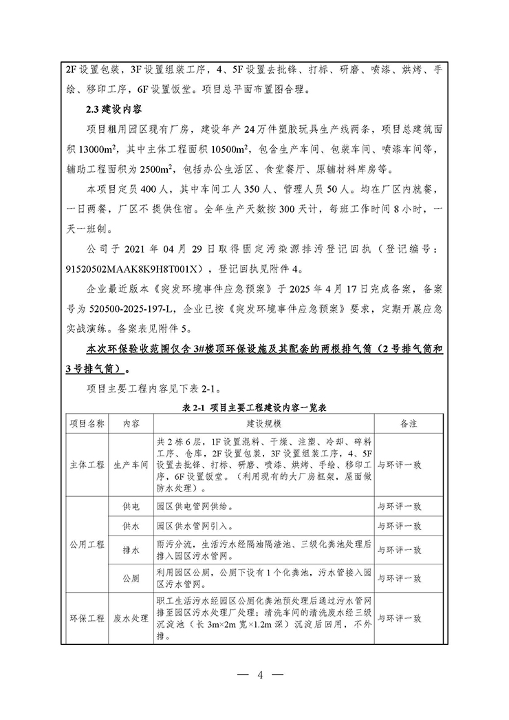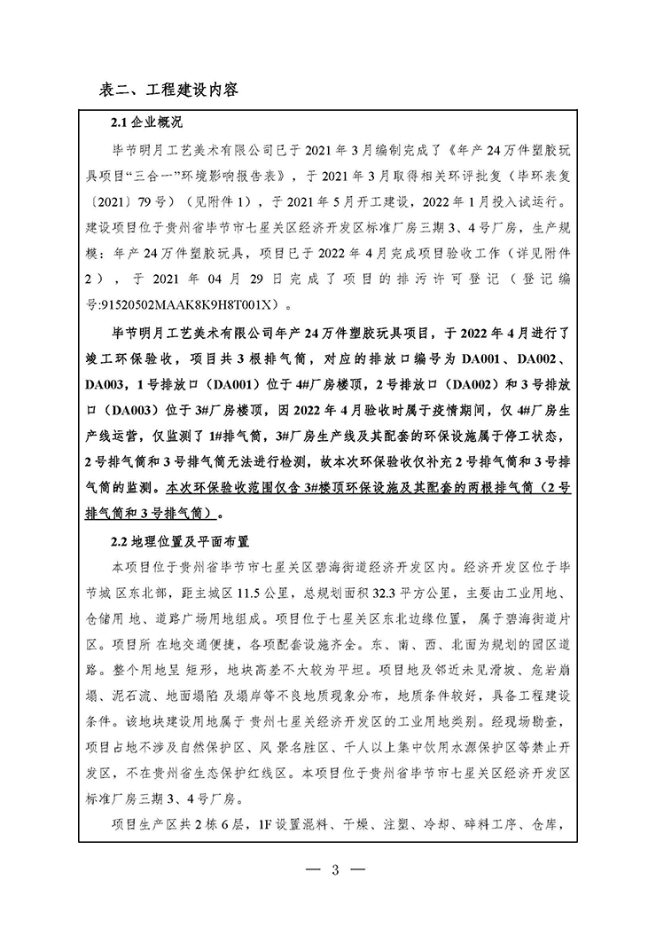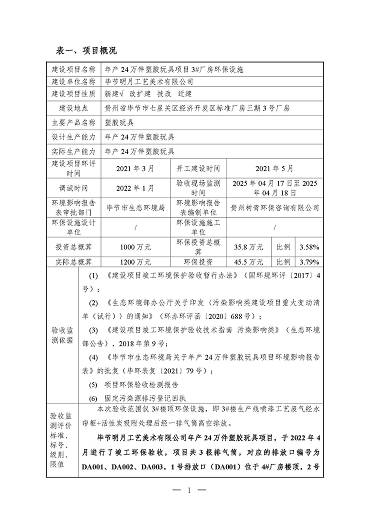 项目名称:年产24万件塑胶玩具项目3#厂房环保设施