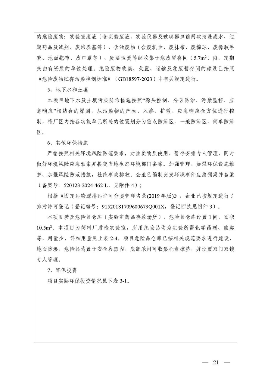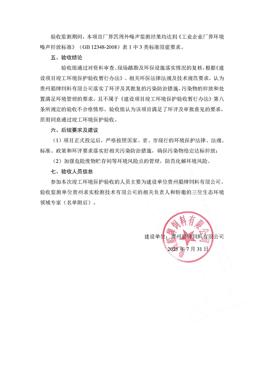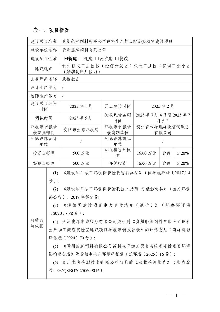 根据《国务院关于修改<建设项目竣工环境保护管理条例>的决定》(国务院令第682号),以及环保部《关于发布<建设项目竣工环境保护保护验收暂行办法>的公告》(国环规环评[2017]4号),现将《贵州船牌饲料有限公司饲料生产加工配套实验室建设项目竣工环境保护竣工环境保护验收监测报告》公示如下: