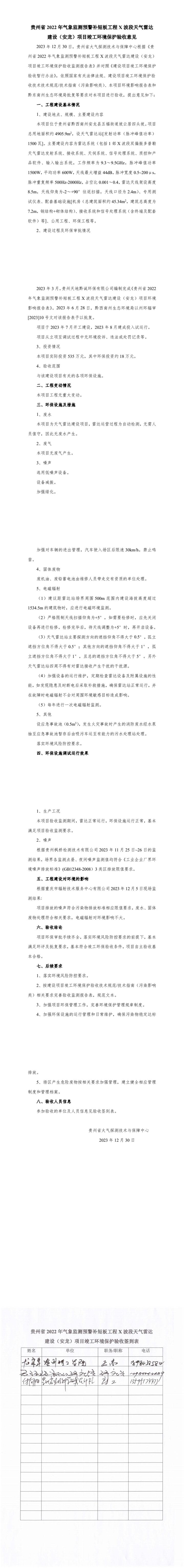 贵州省2022年气象监测预警补短板工程X波段天气雷达建设(安龙)项目竣工环境保护验收监测报告表