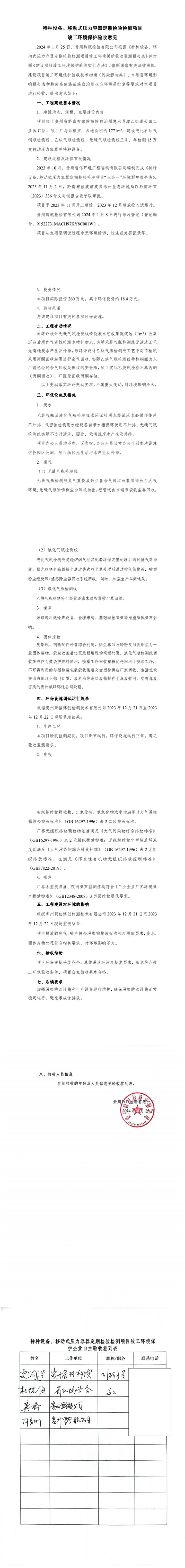 特种设备、移动式压力容器定期检验检测项目竣工环境保护验收监测报告表公示