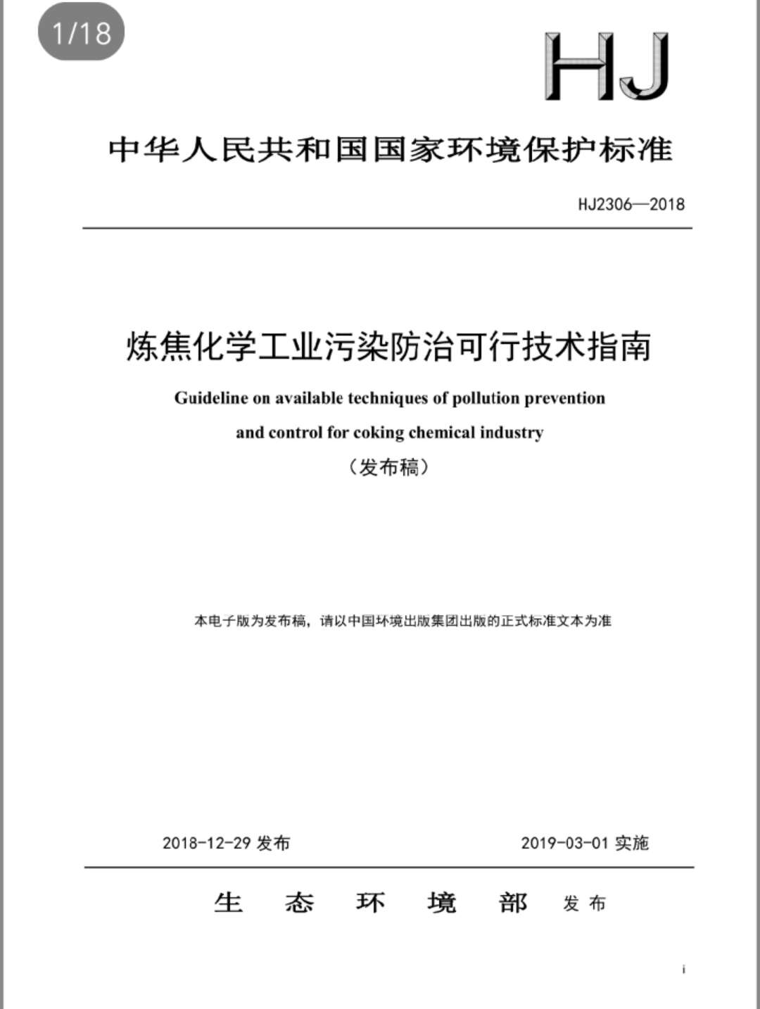 炼焦化学工业污染防治可行技术指南 ▎文件分类 环境工程技术规范 ▎文件编号 HJ2306-2018 ▎是否有效 有效 ▎发布日期 2018-12-29 ▎实