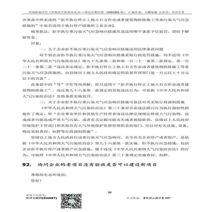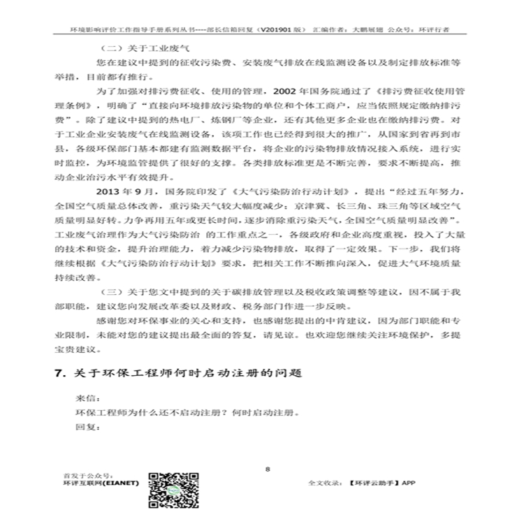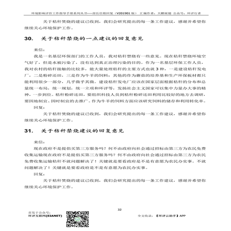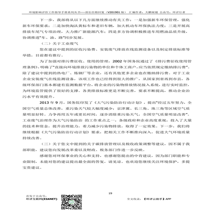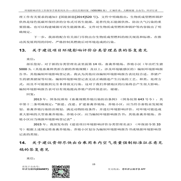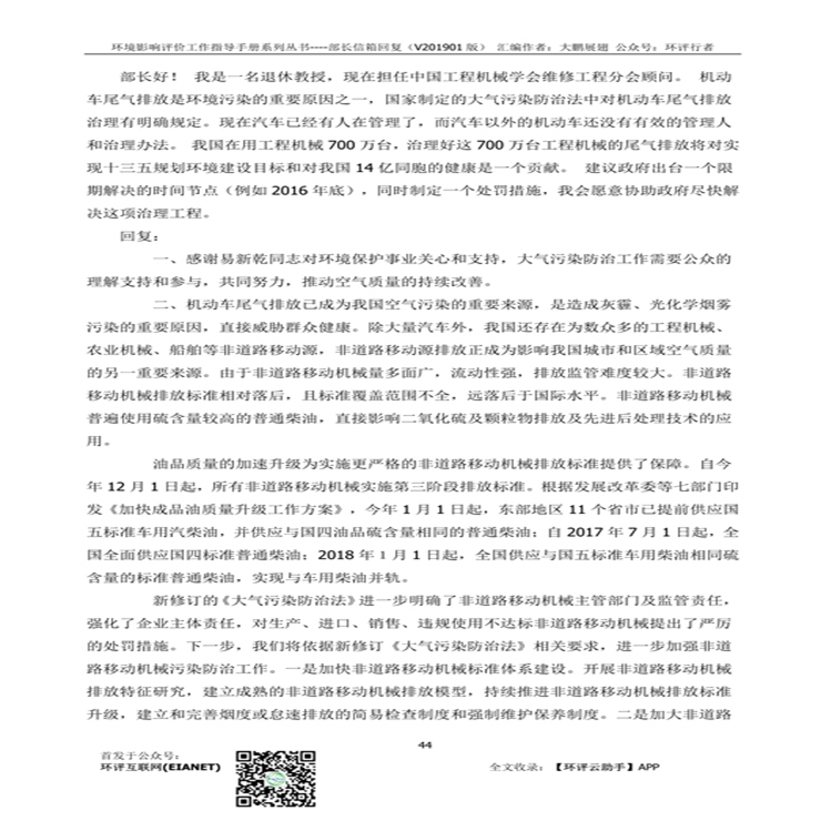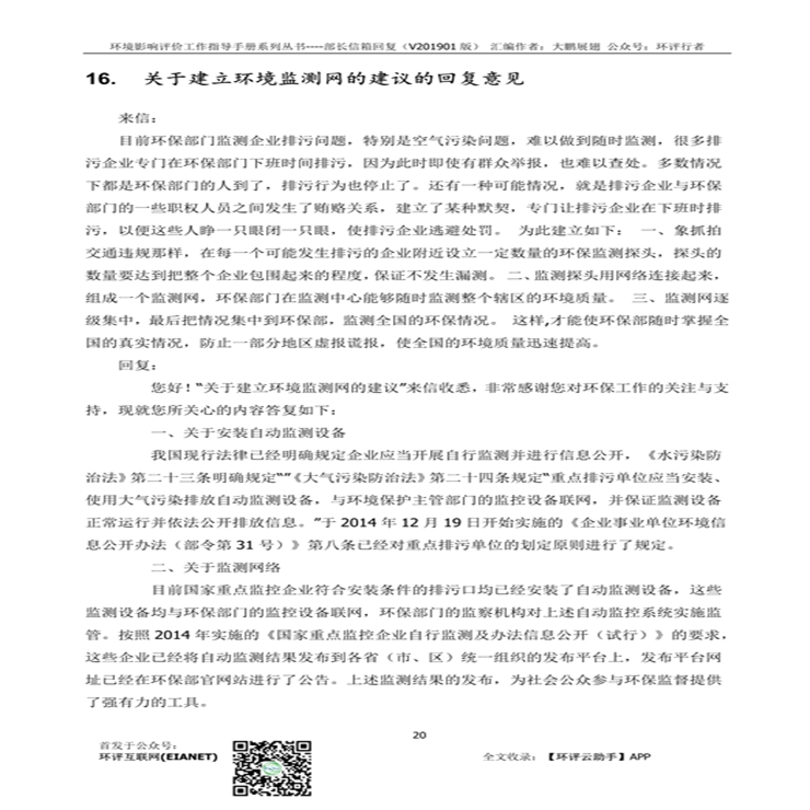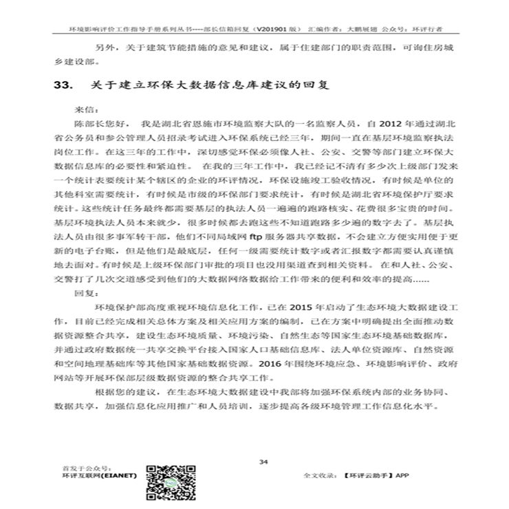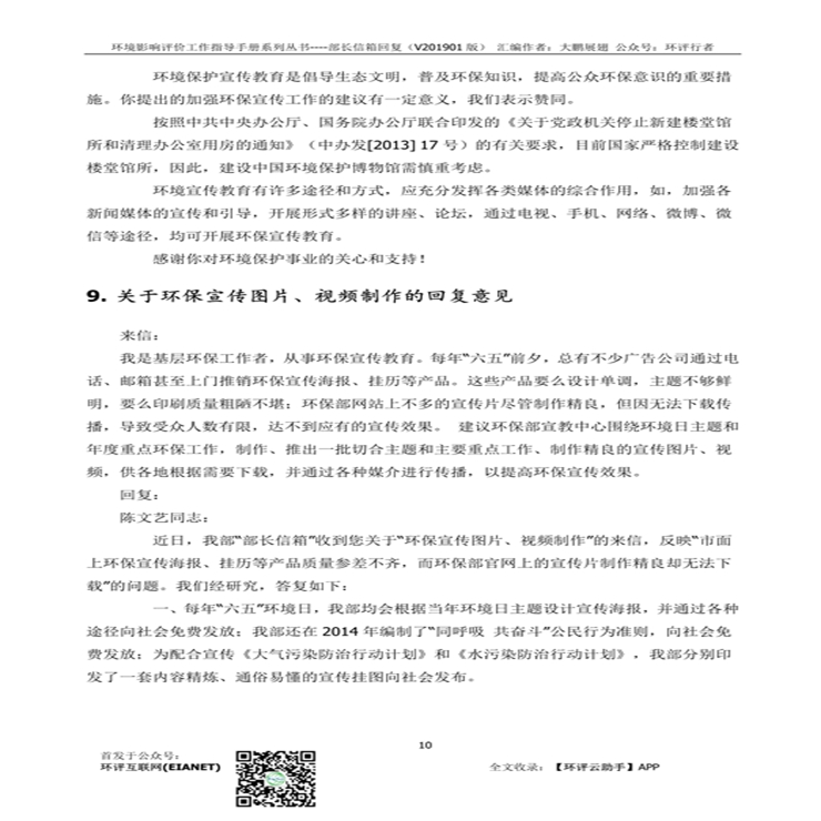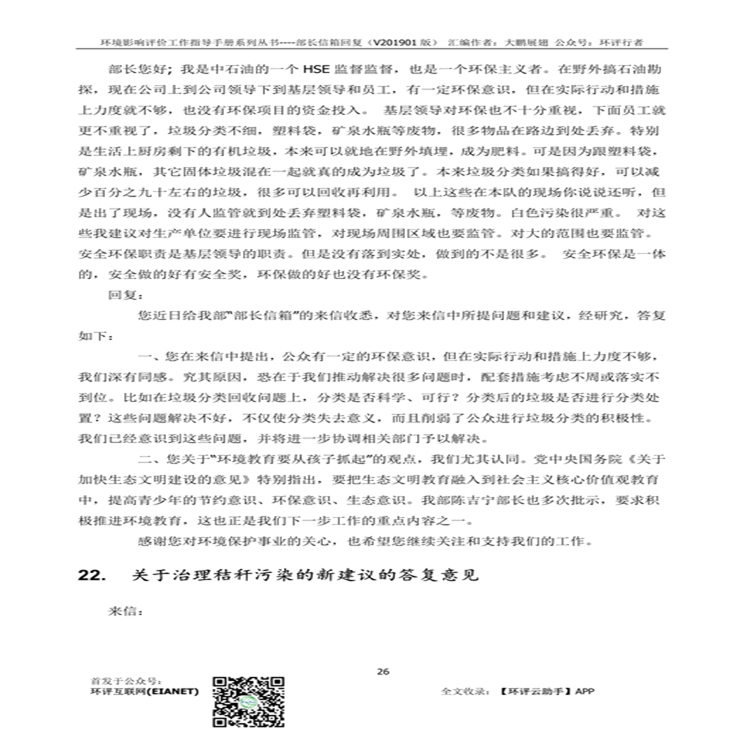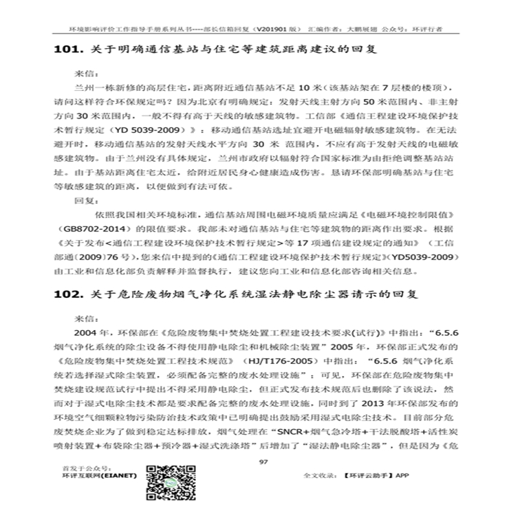 环境影响评价工作指导手册系列丛书--部长信箱回复汇编