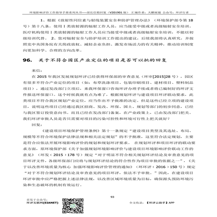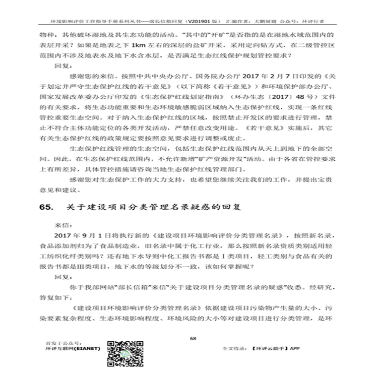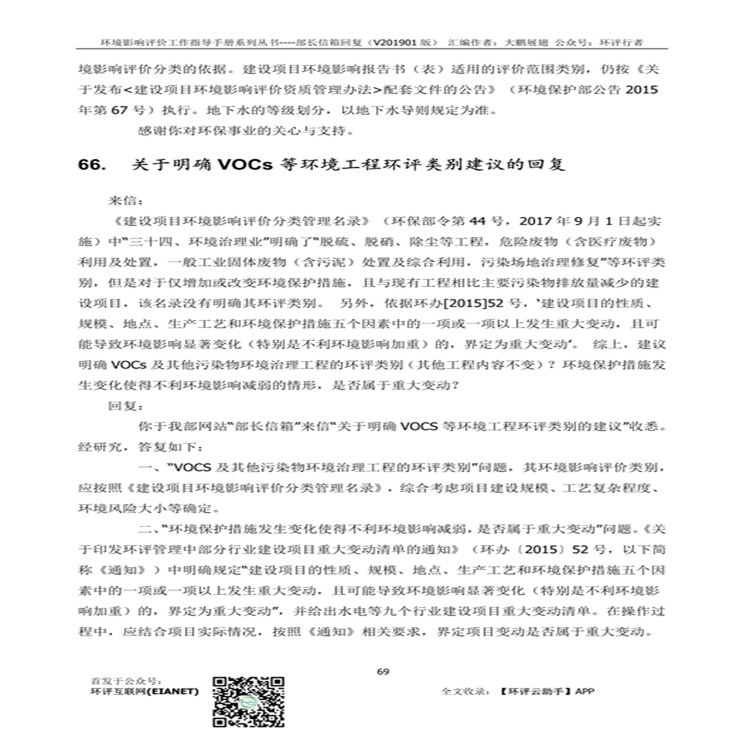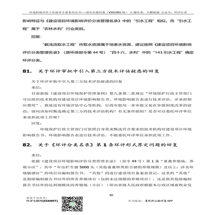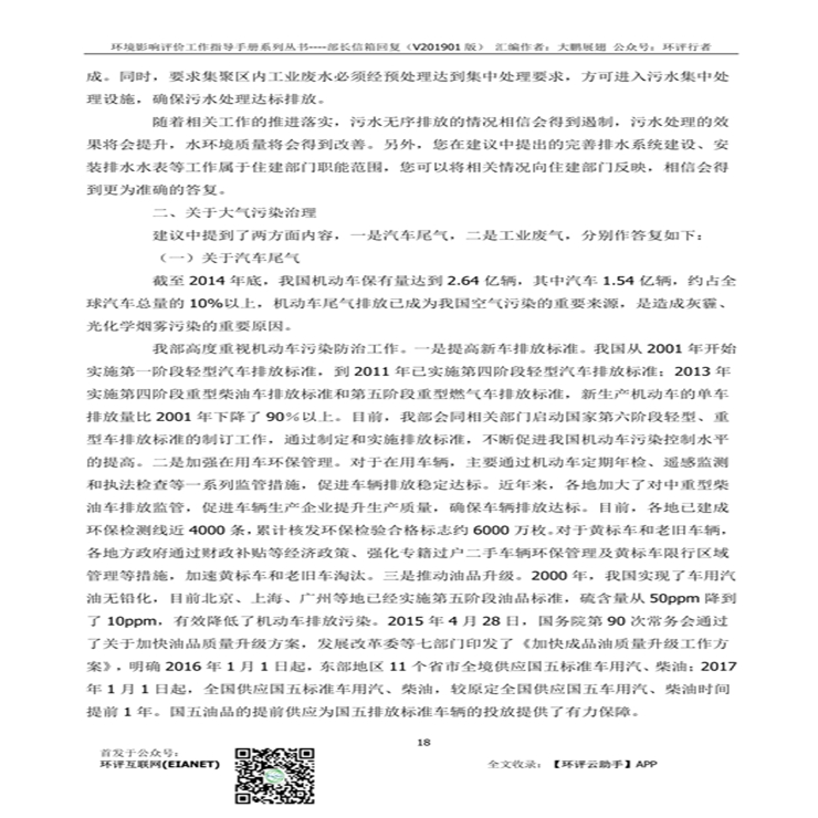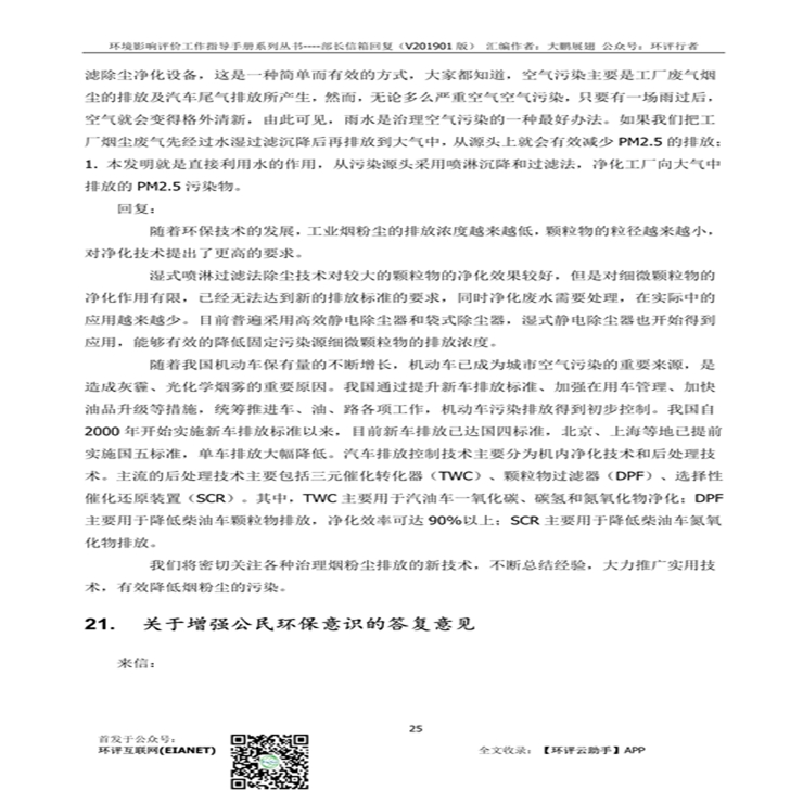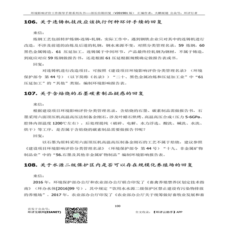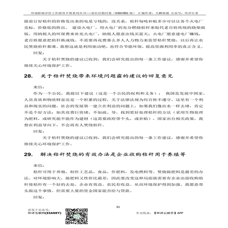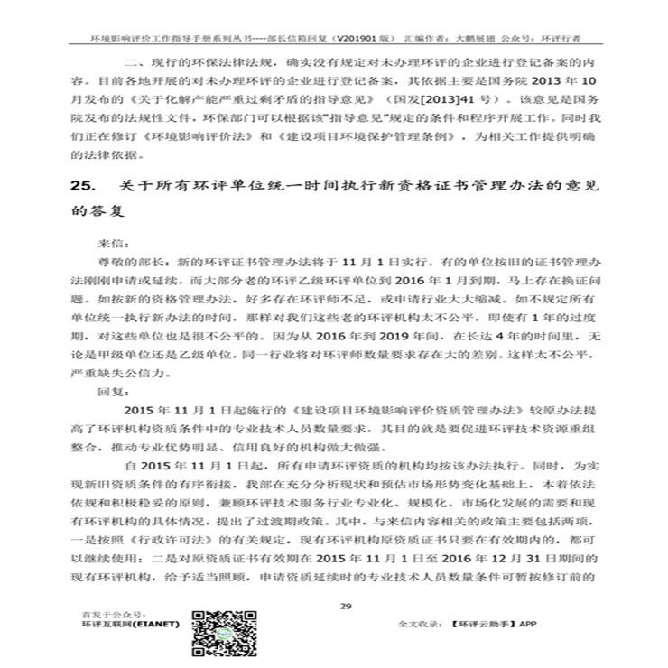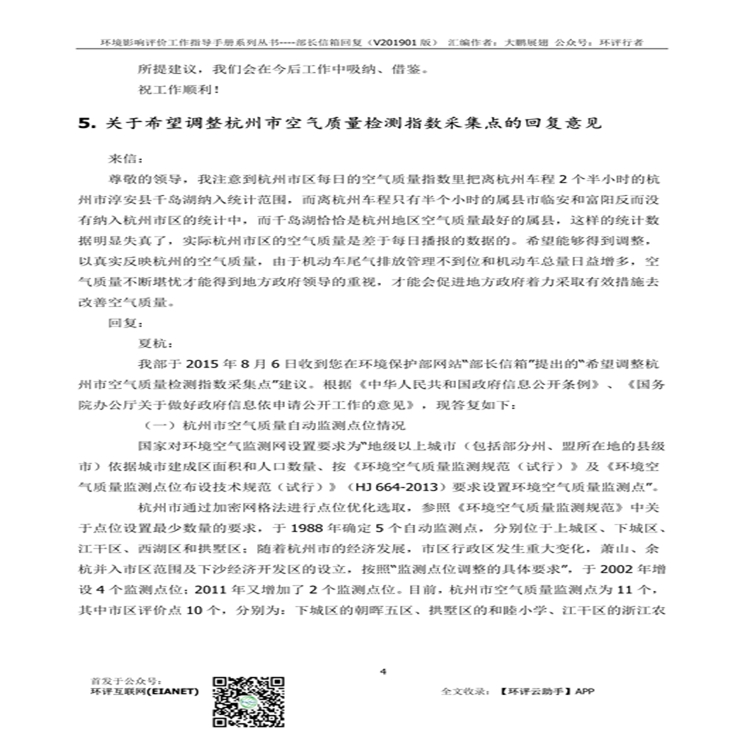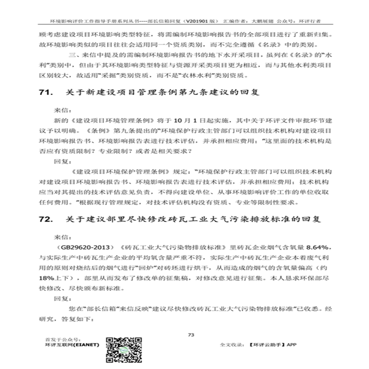 环境影响评价工作指导手册系列丛书--部长信箱回复汇编
