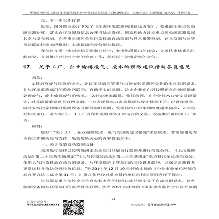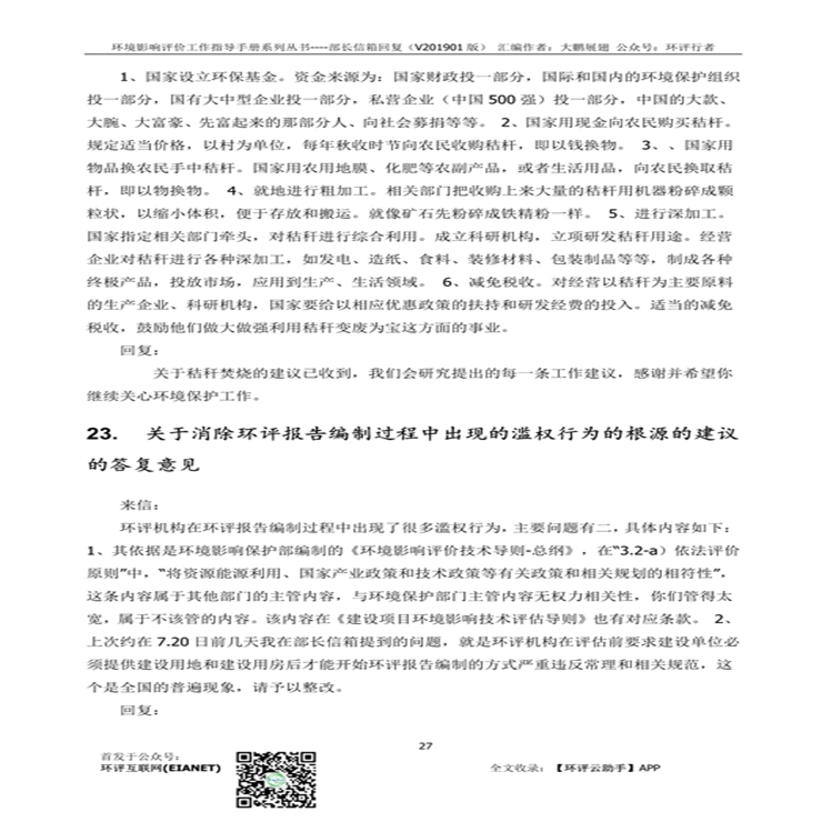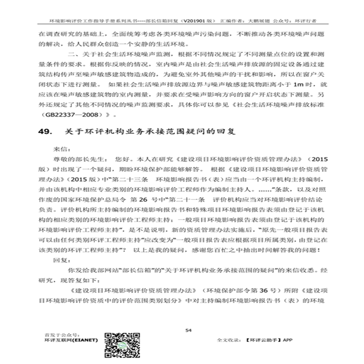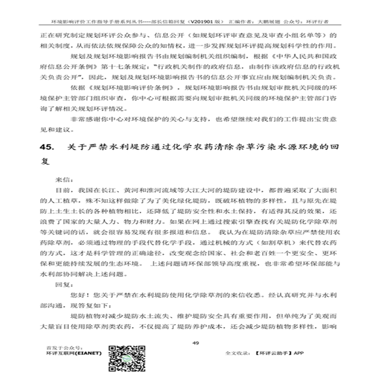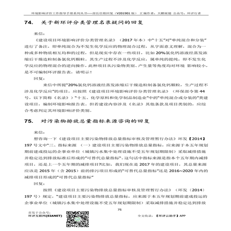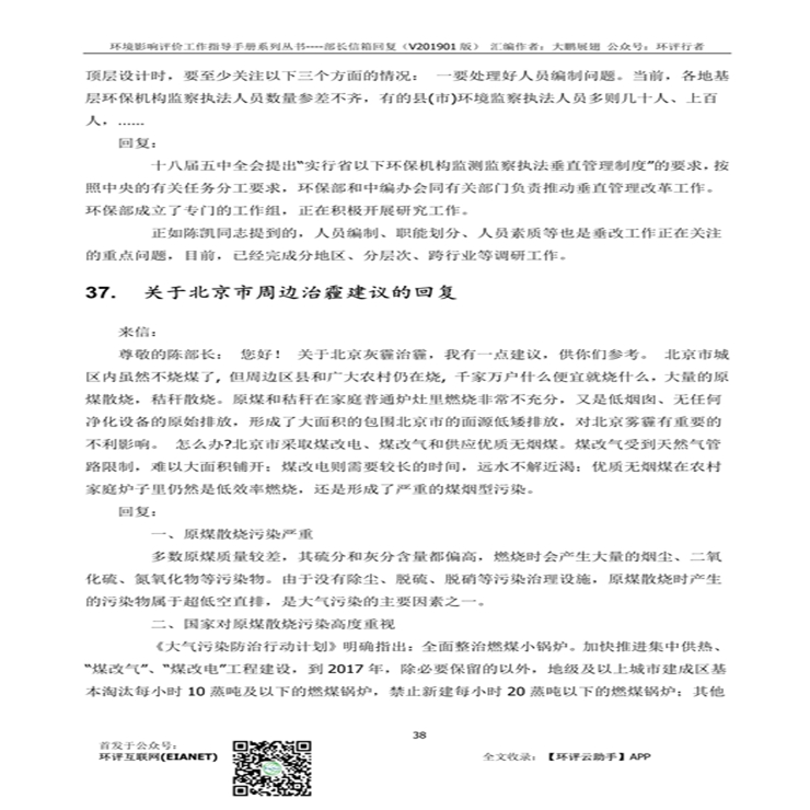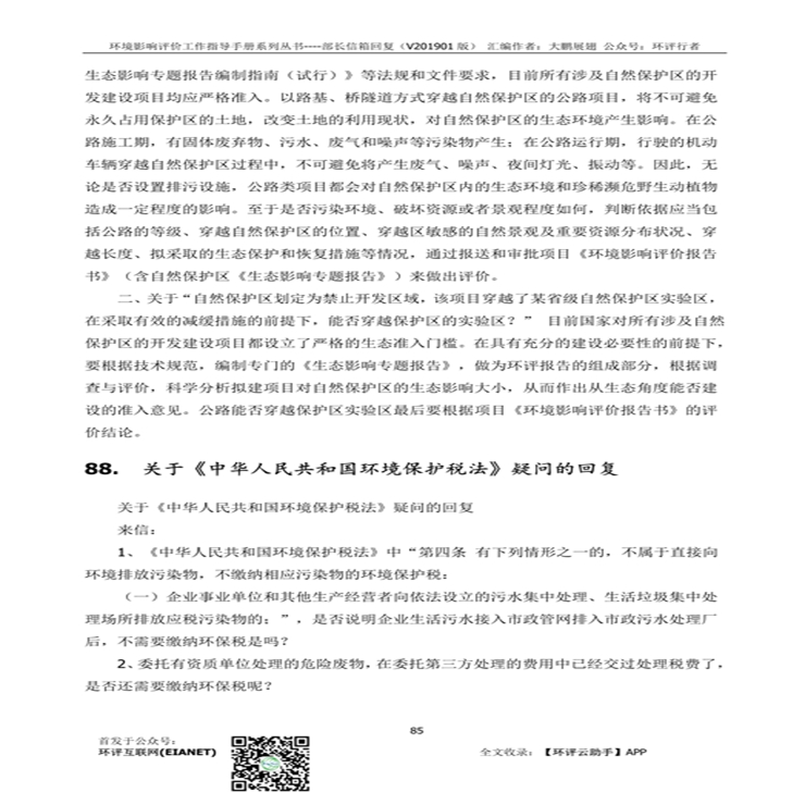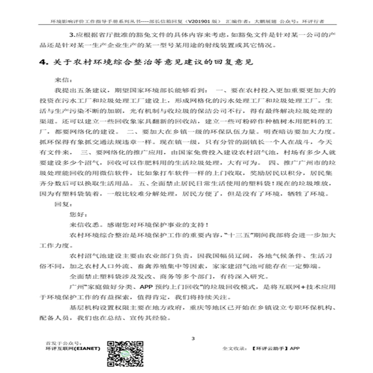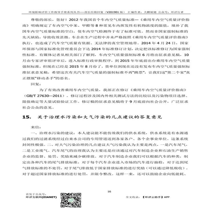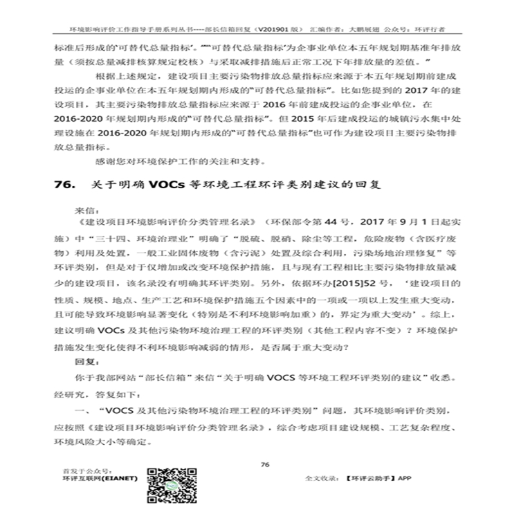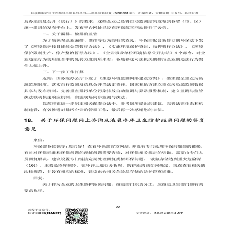 环境影响评价工作指导手册系列丛书--部长信箱回复汇编