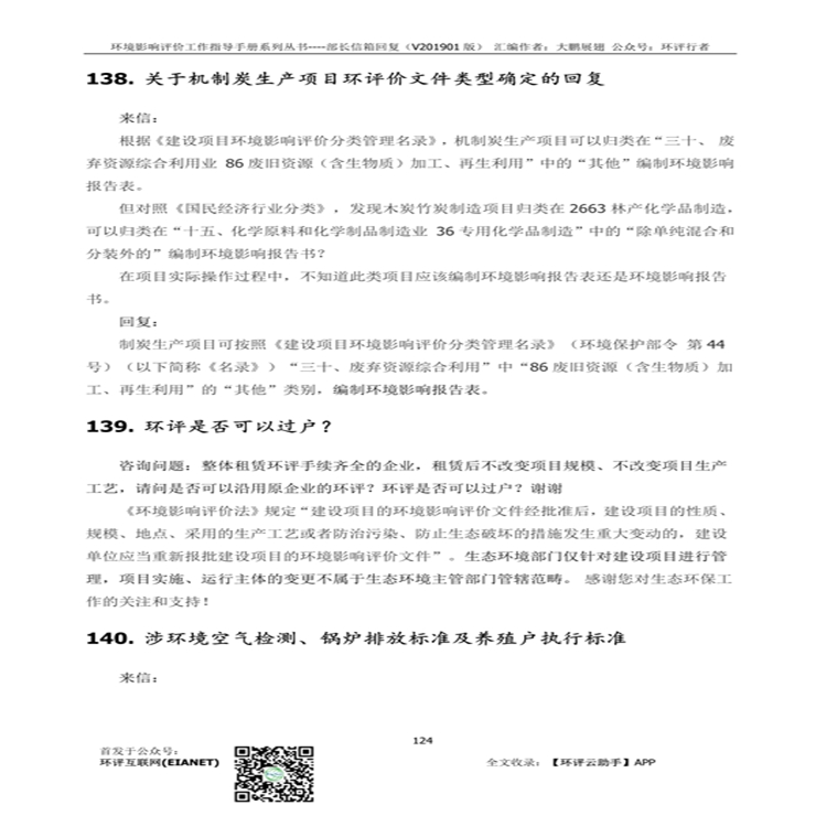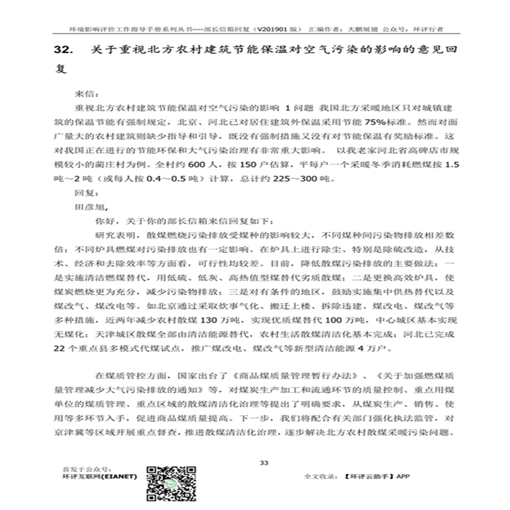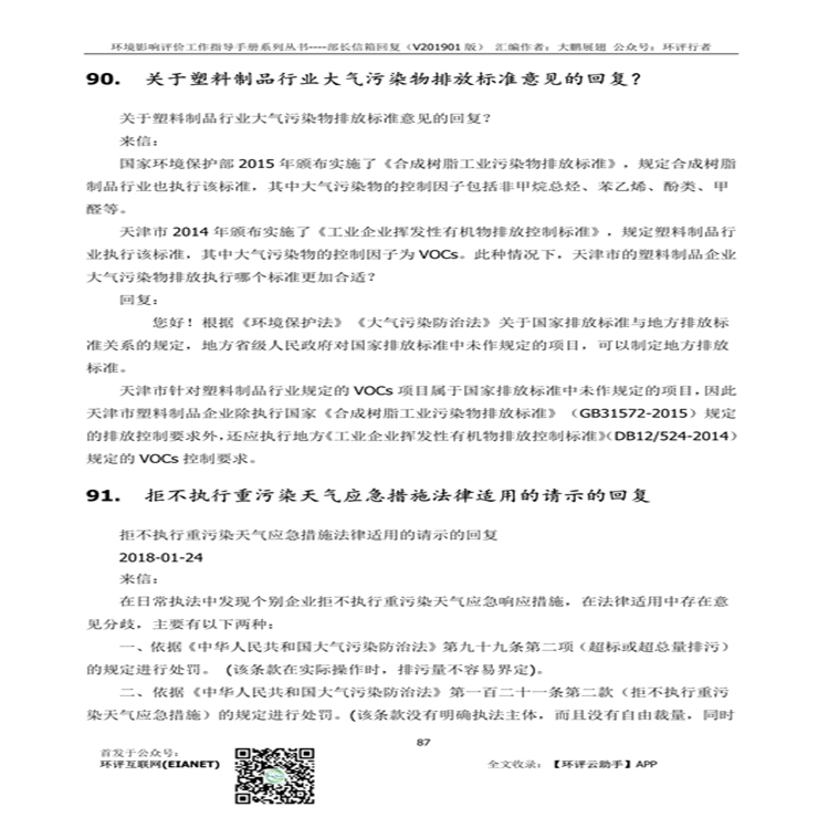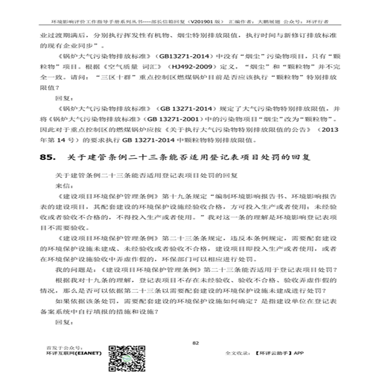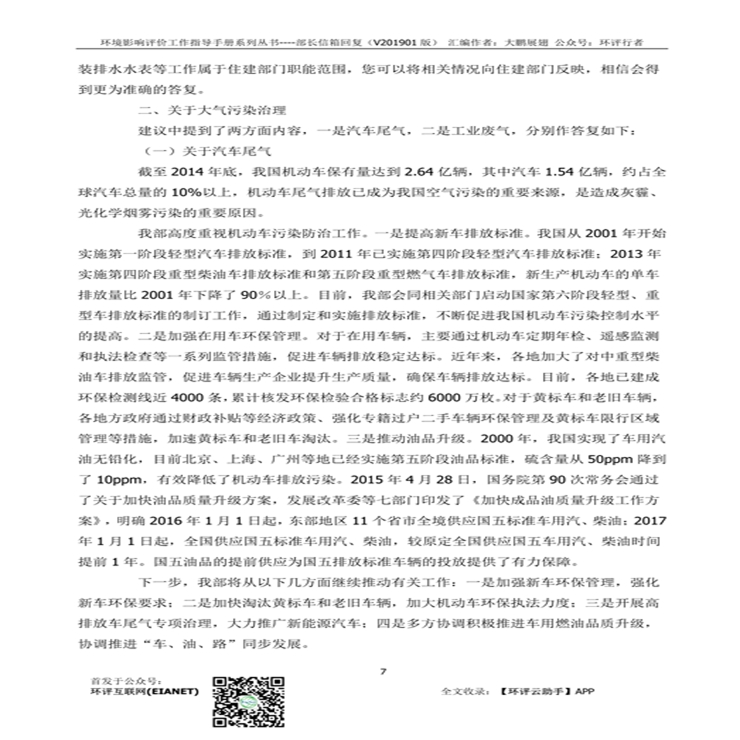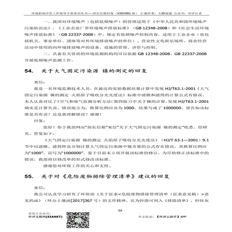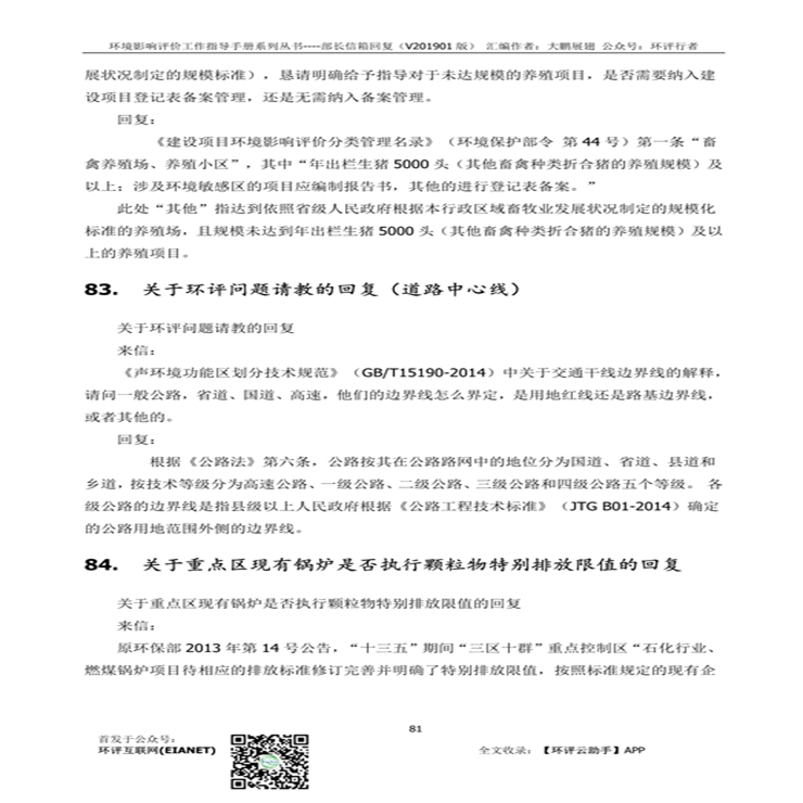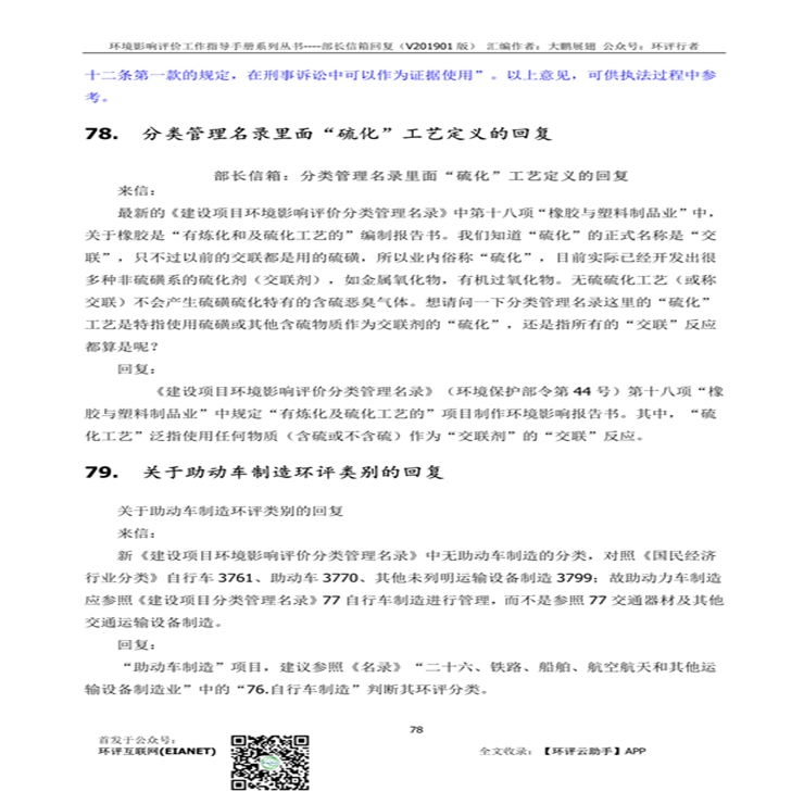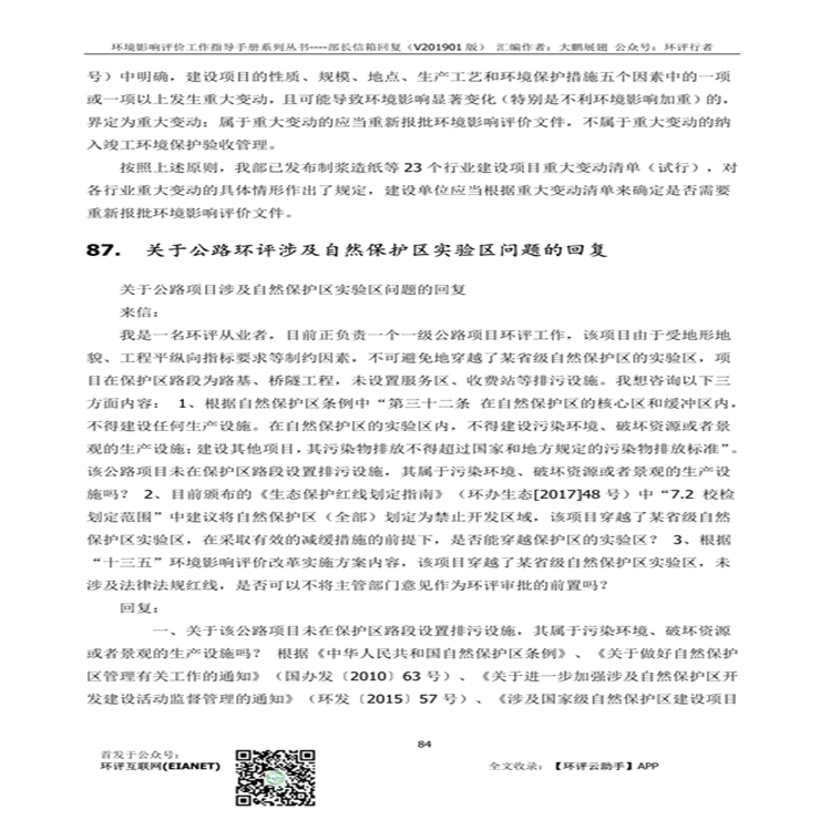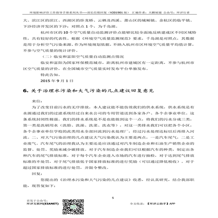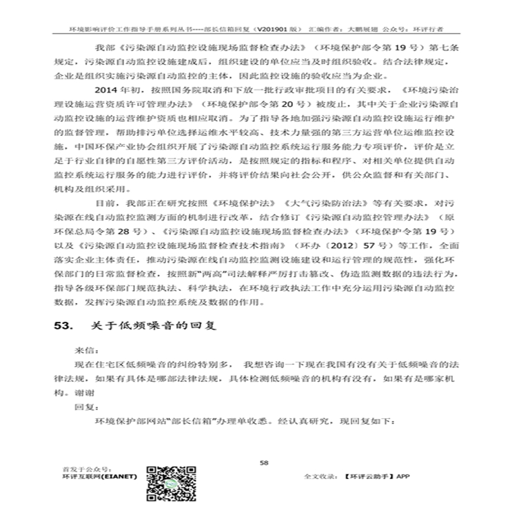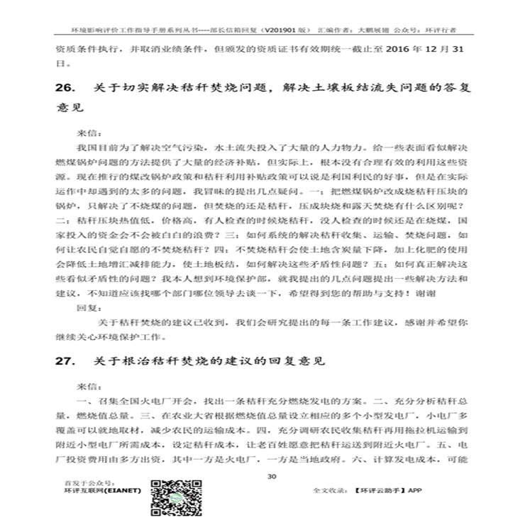 环境影响评价工作指导手册系列丛书--部长信箱回复汇编