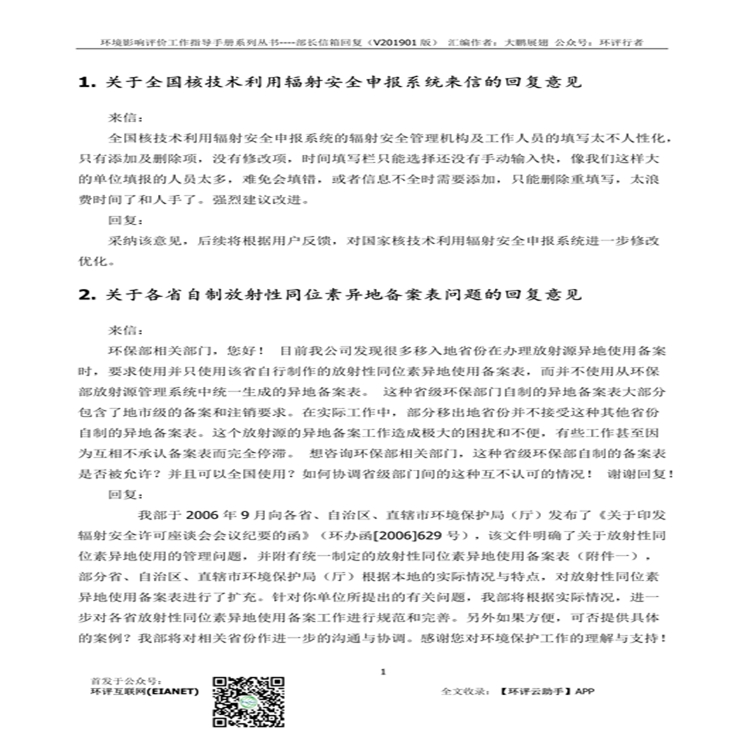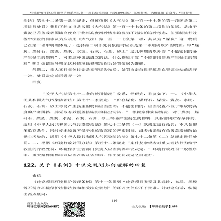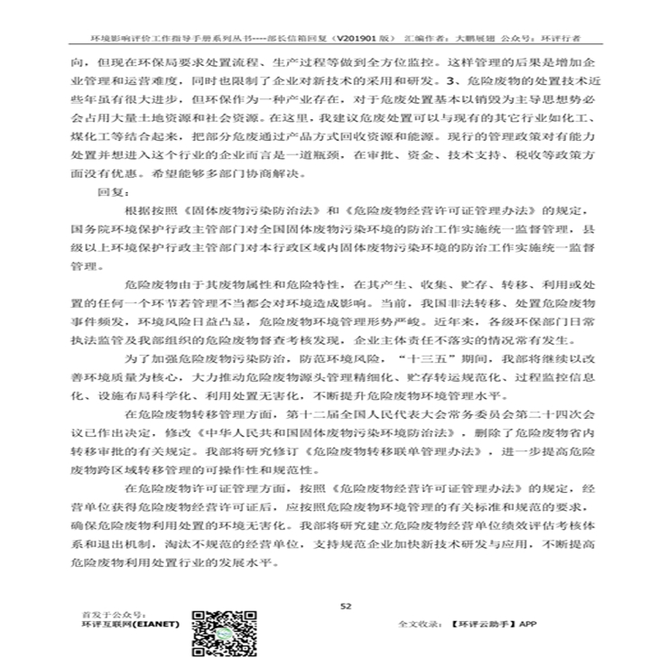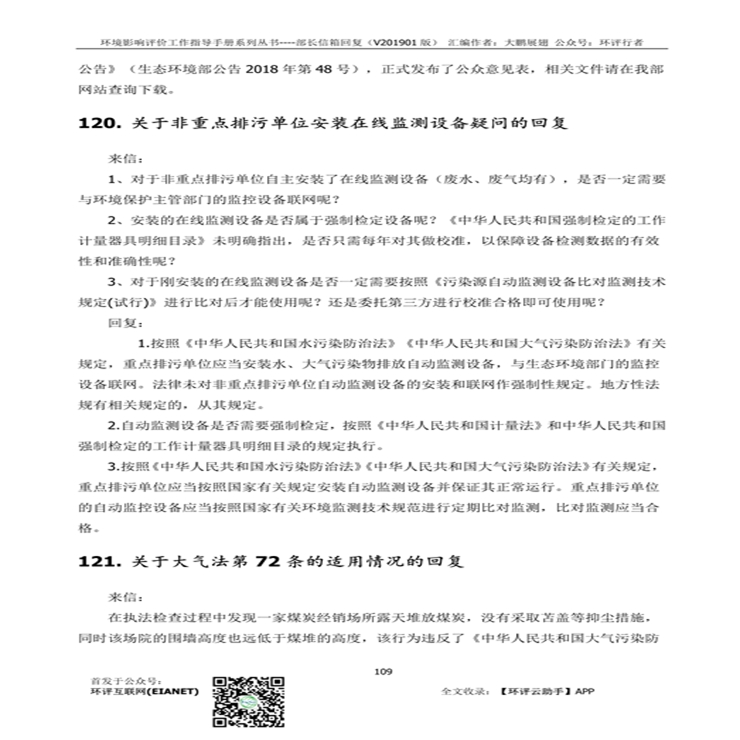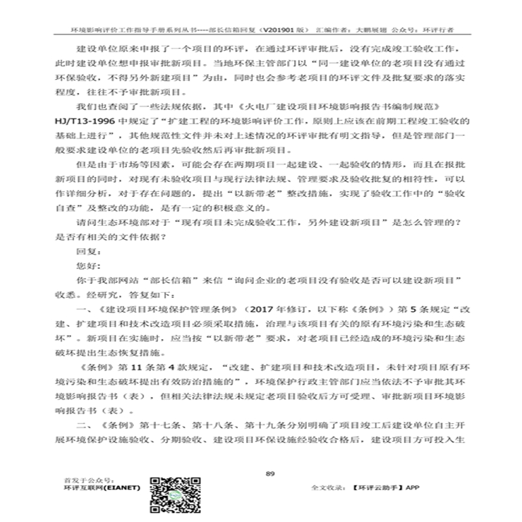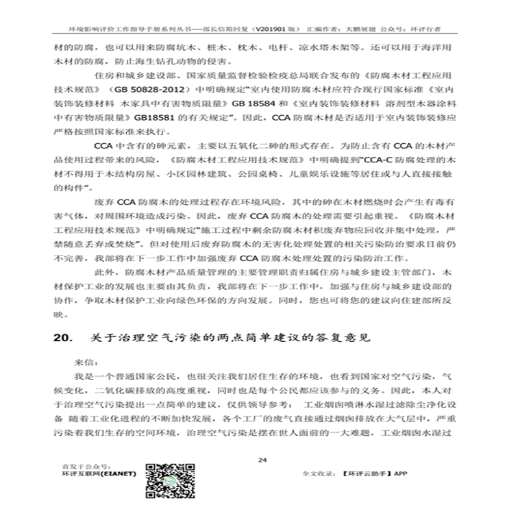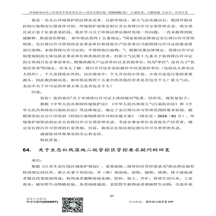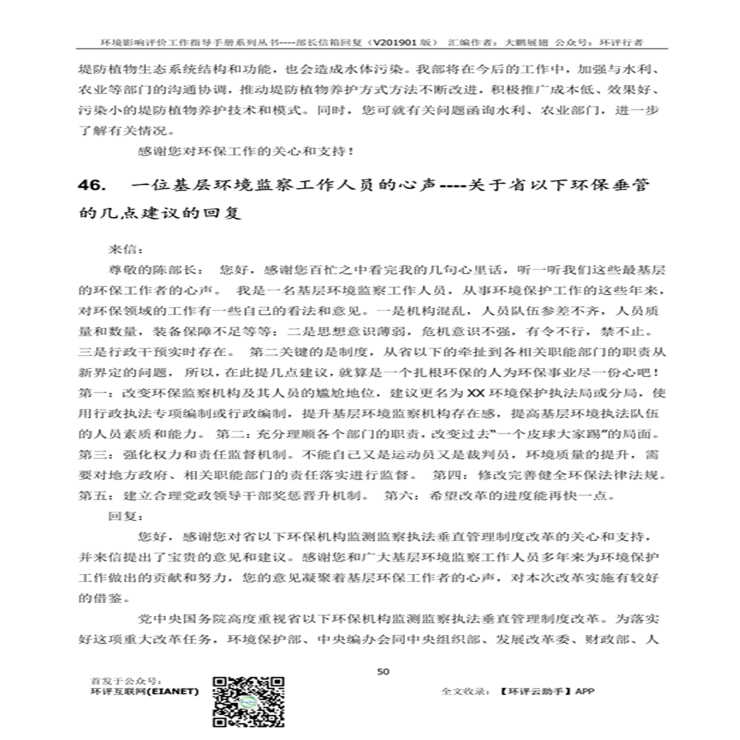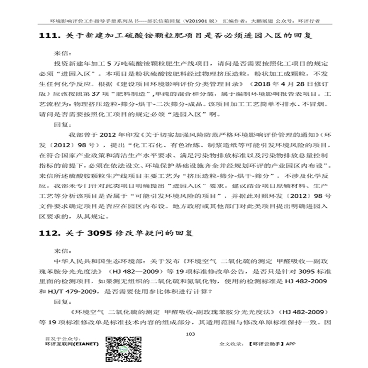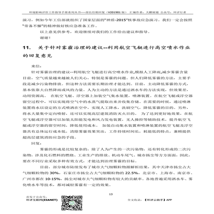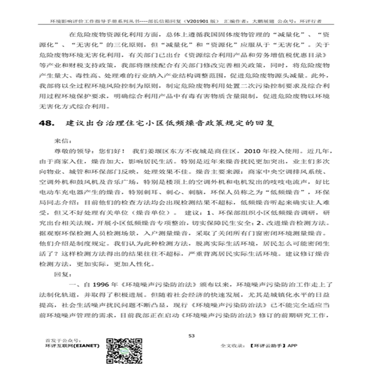 环境影响评价工作指导手册系列丛书--部长信箱回复汇编