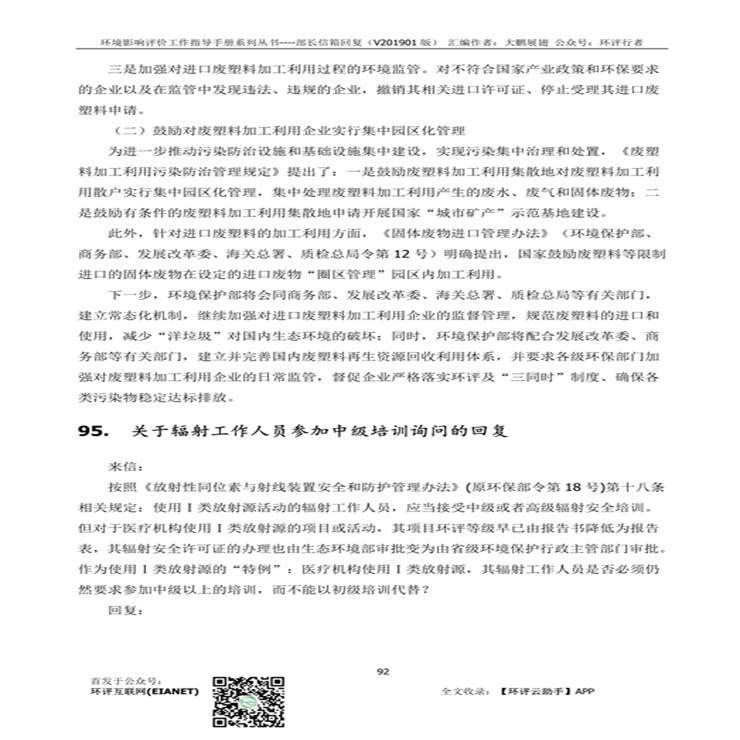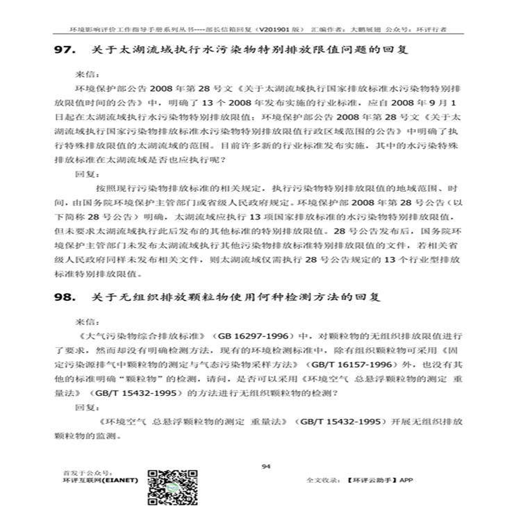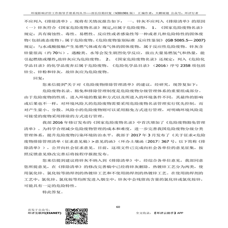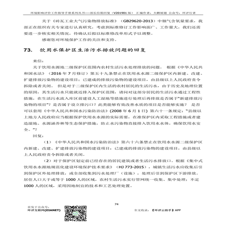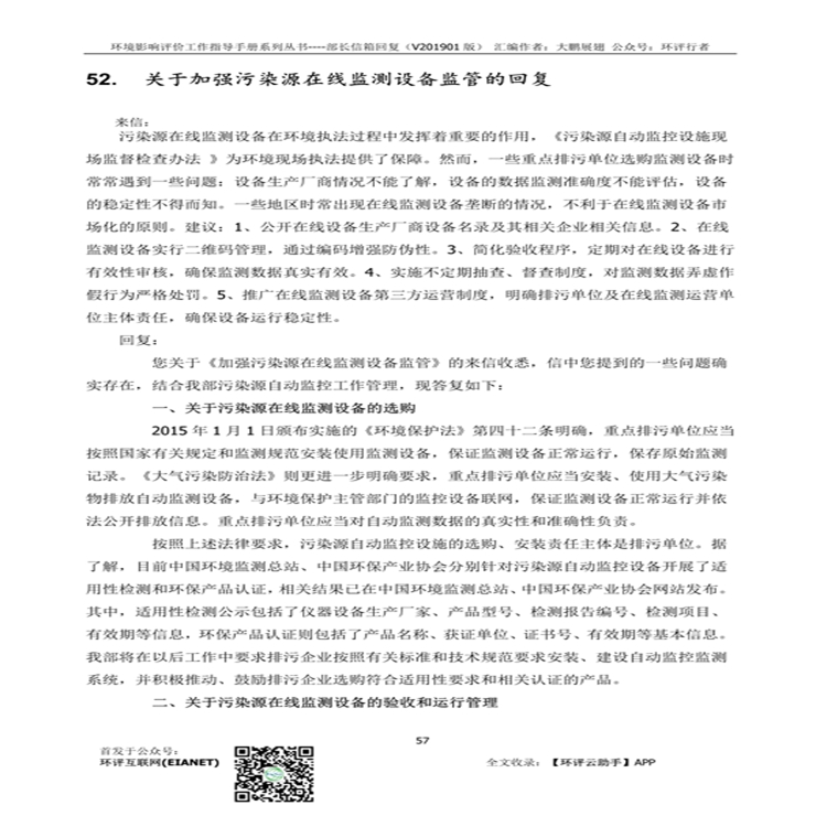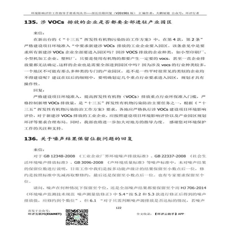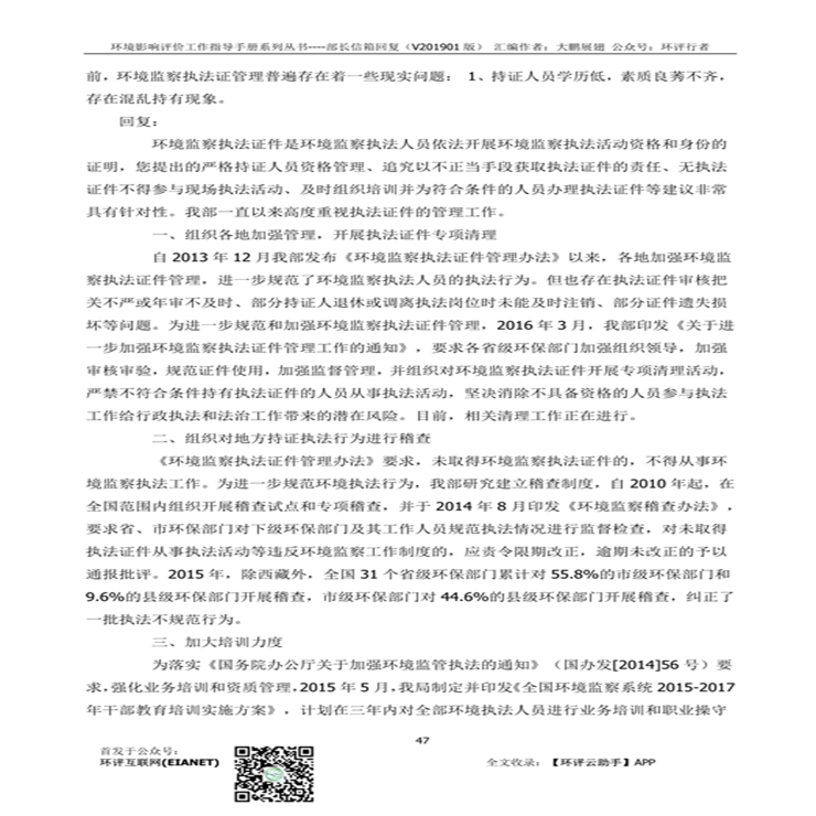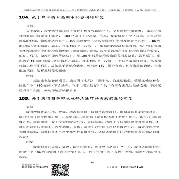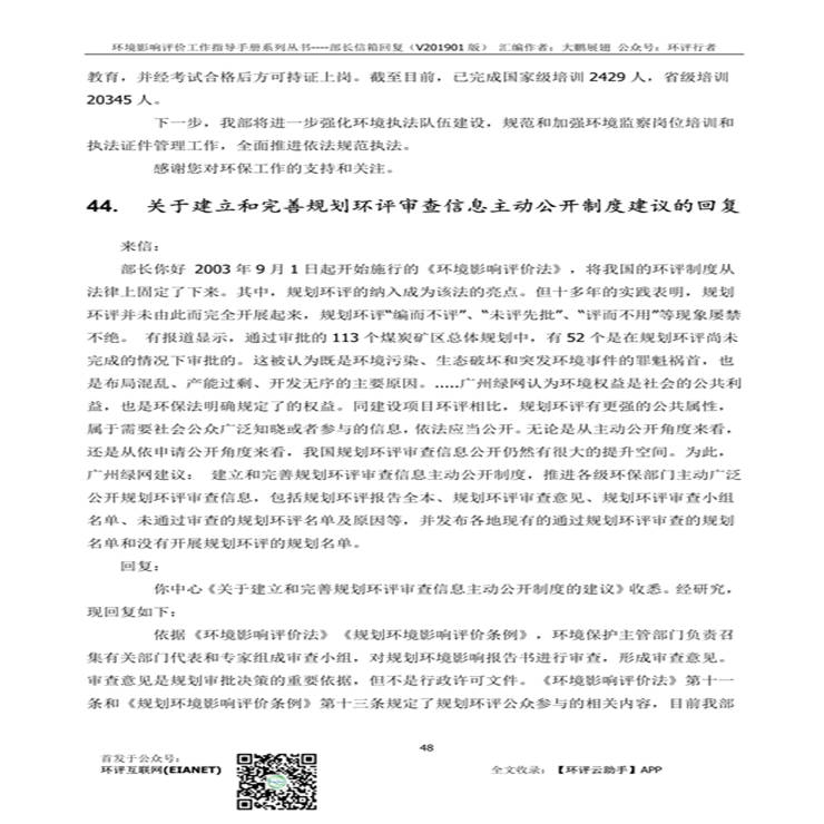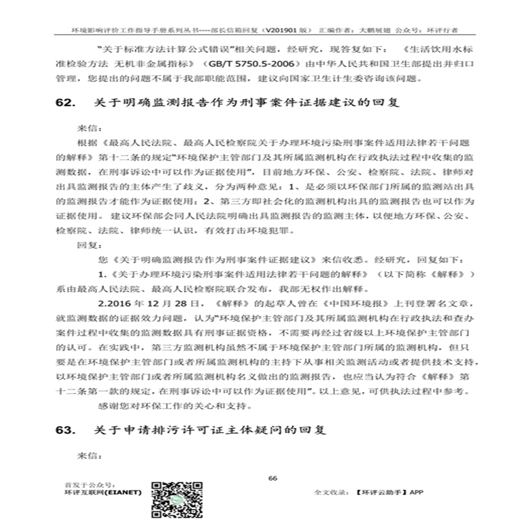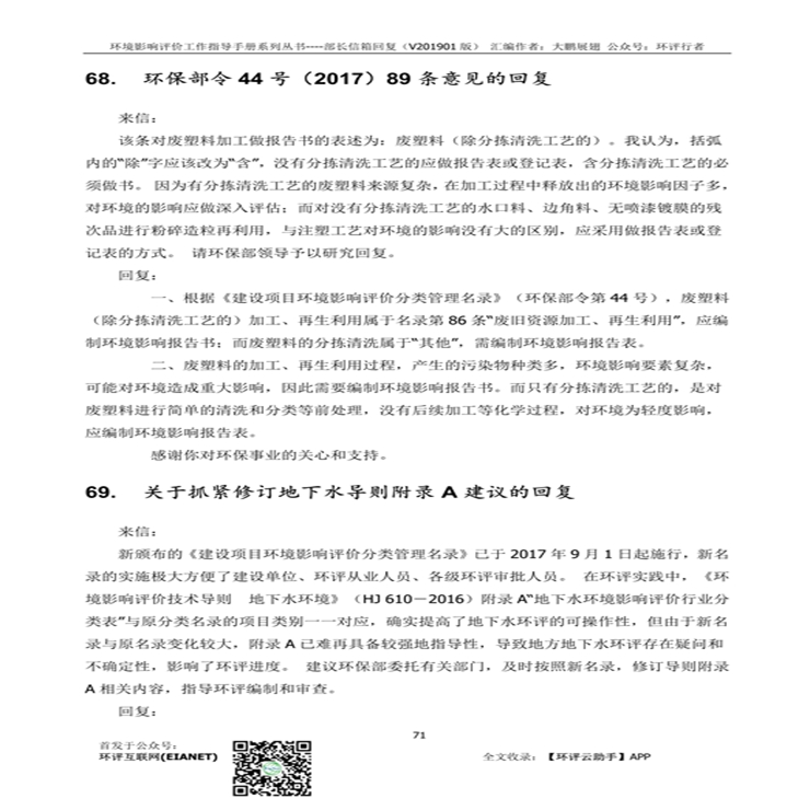 环境影响评价工作指导手册系列丛书--部长信箱回复汇编
