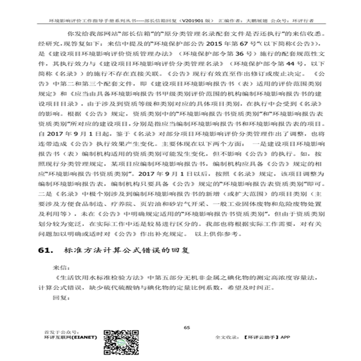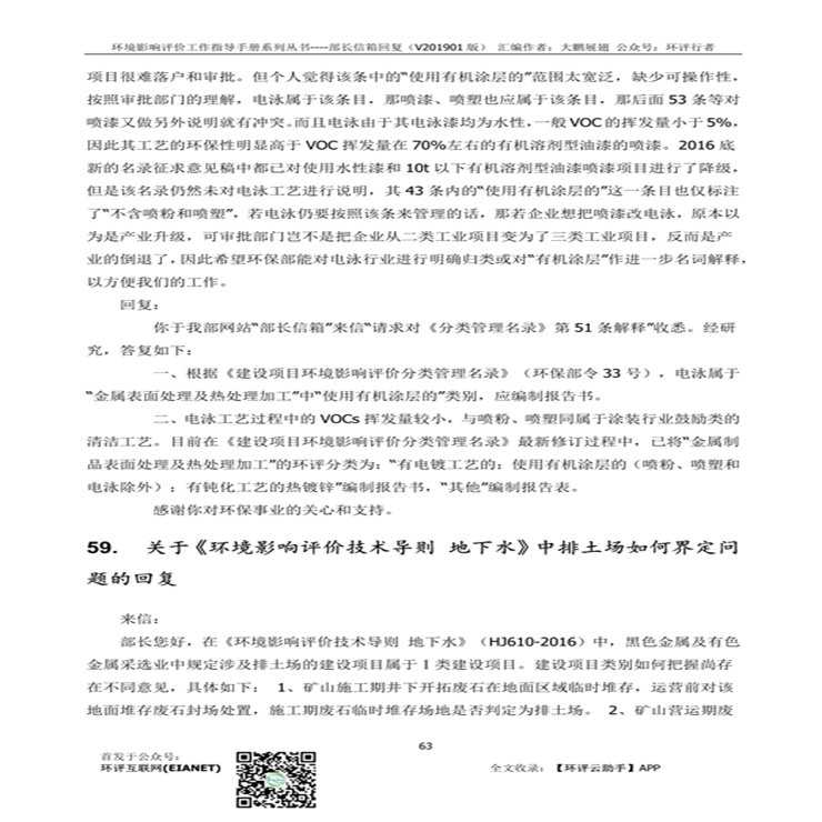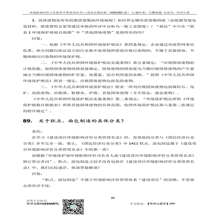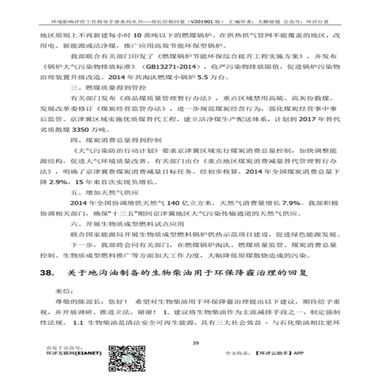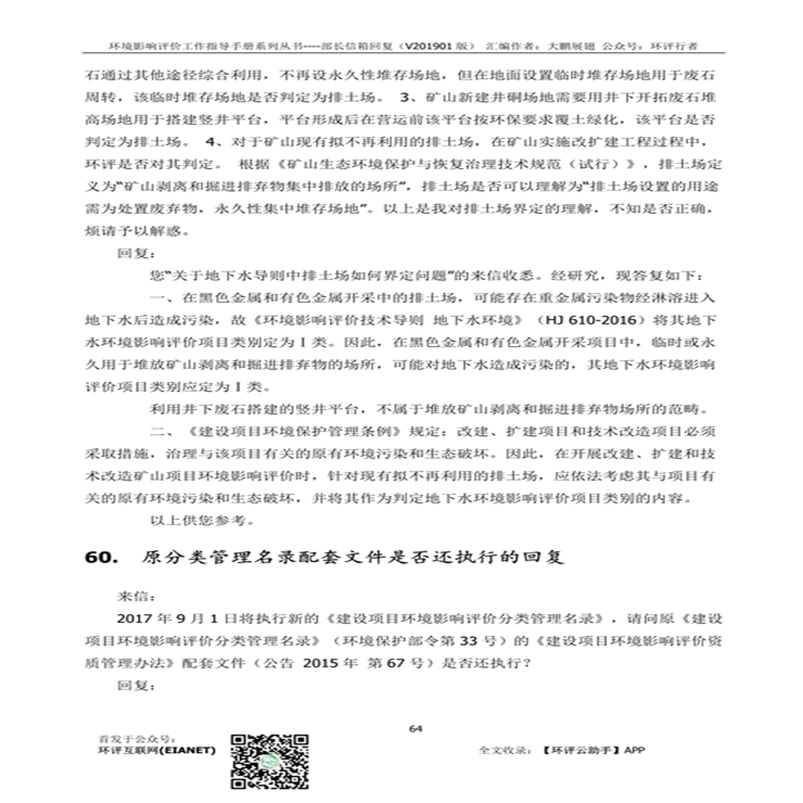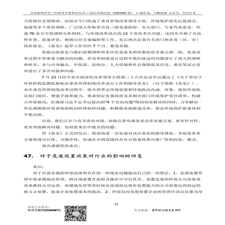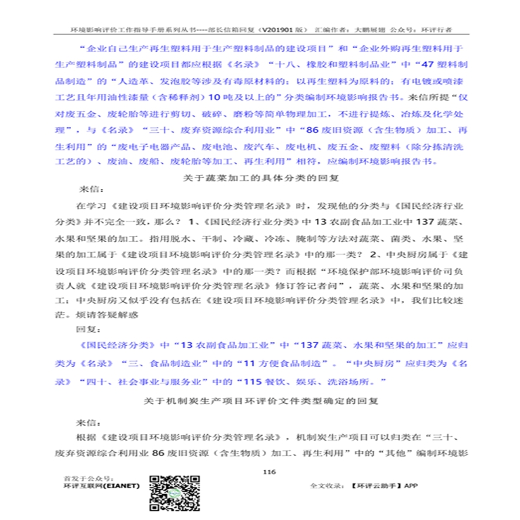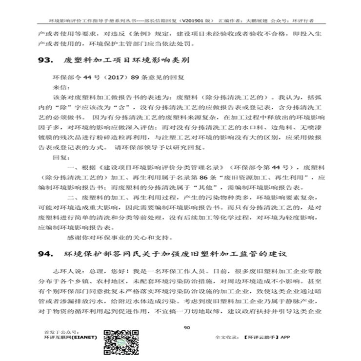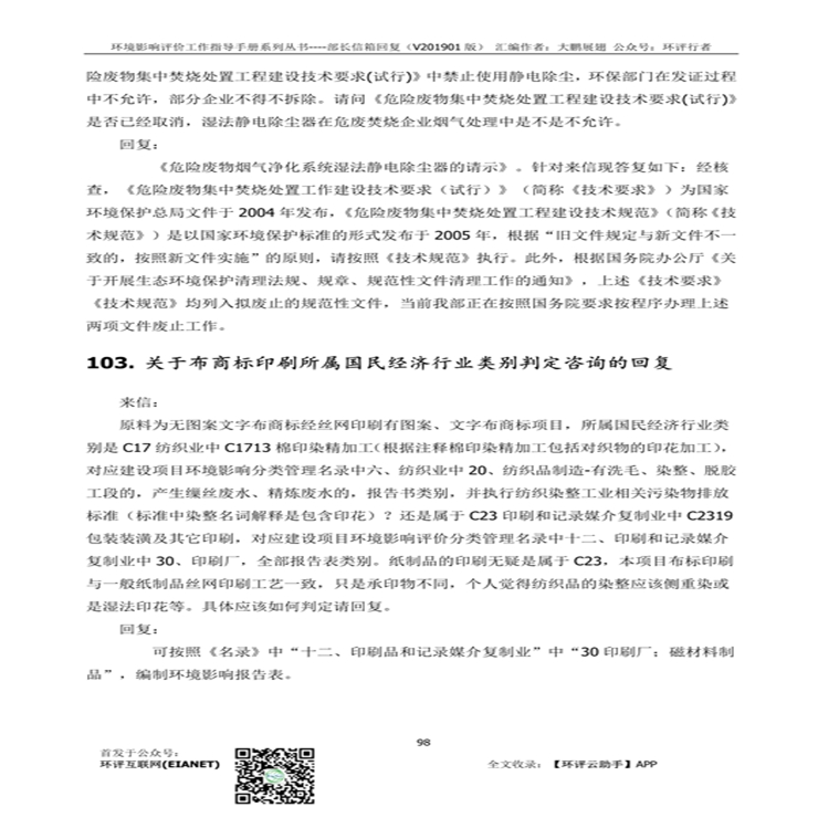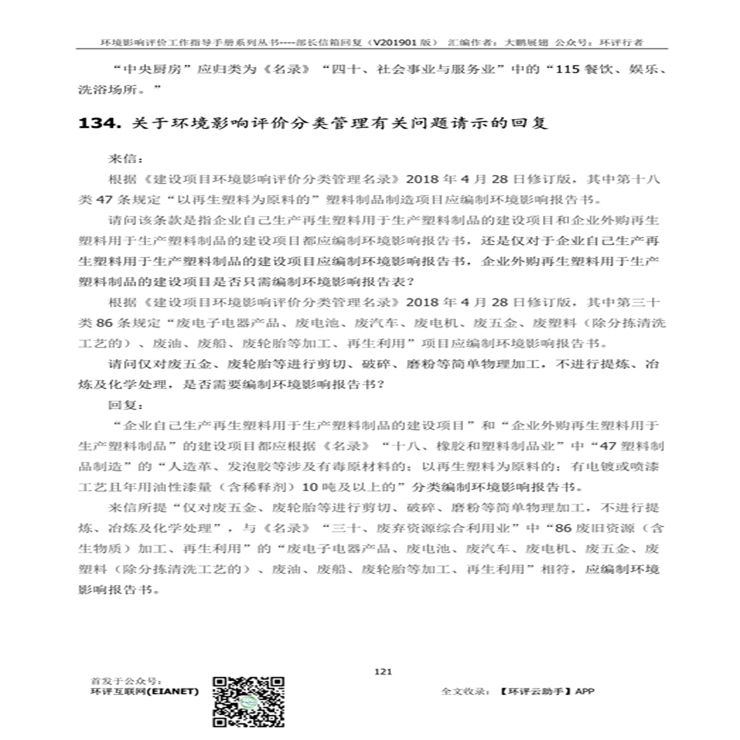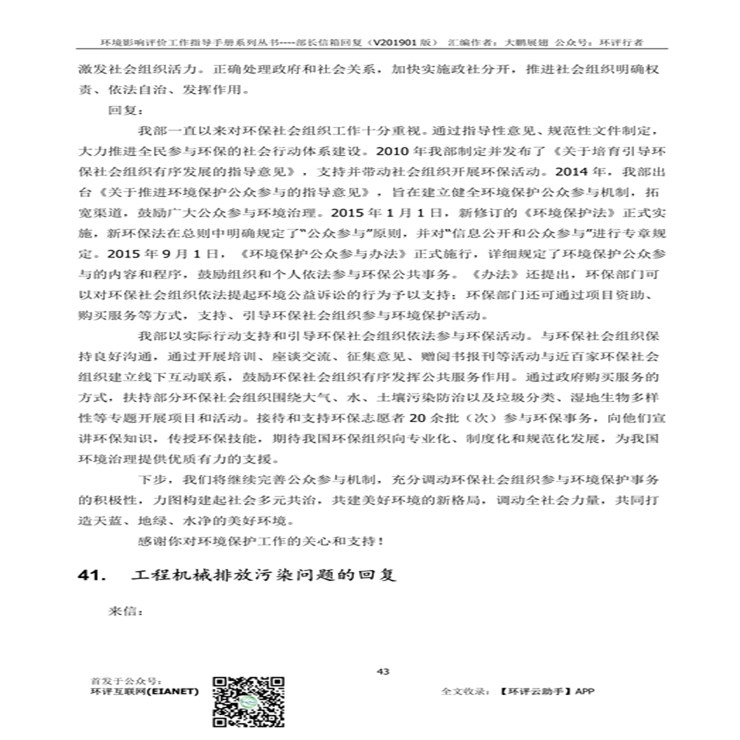 环境影响评价工作指导手册系列丛书--部长信箱回复汇编