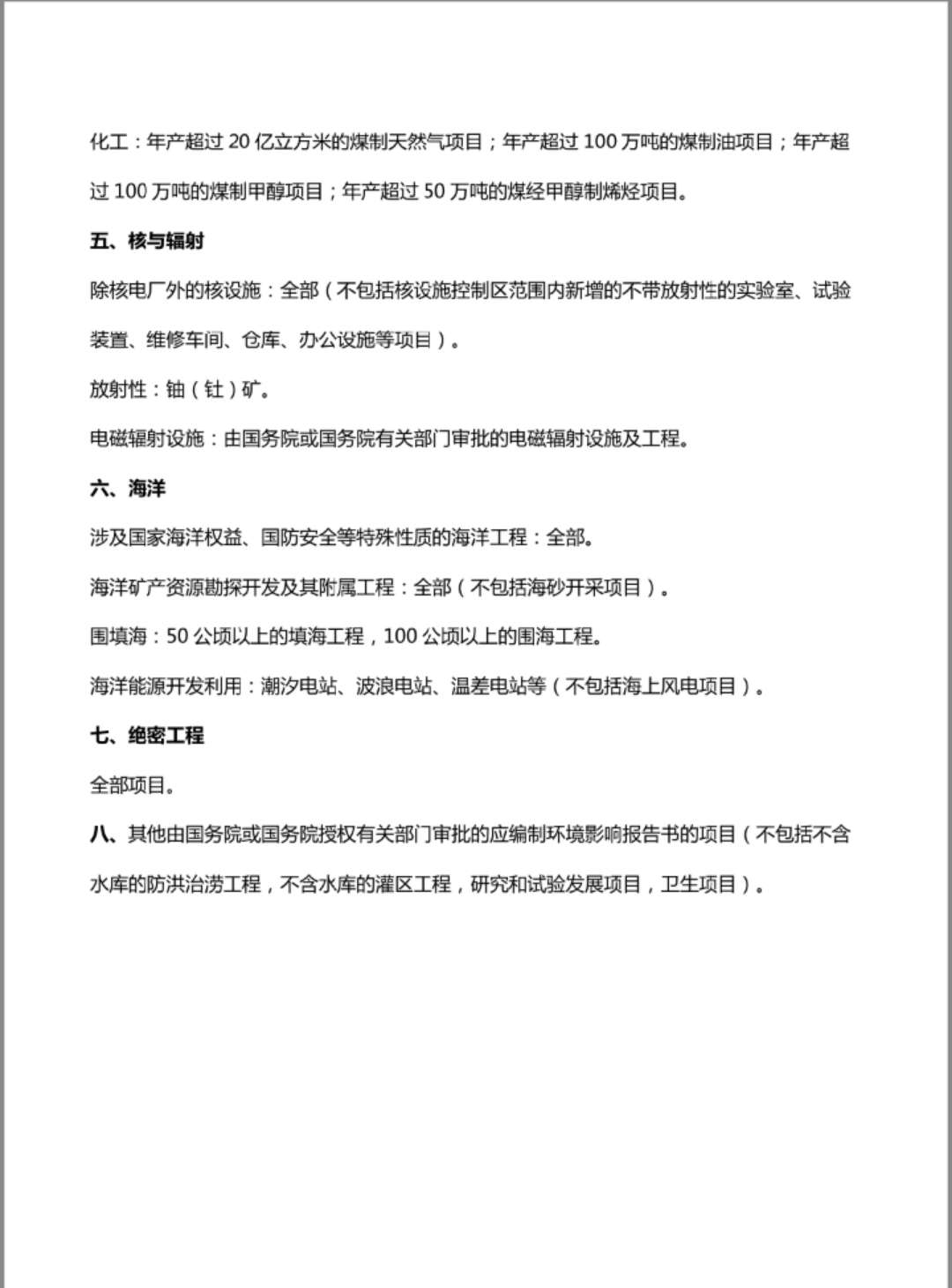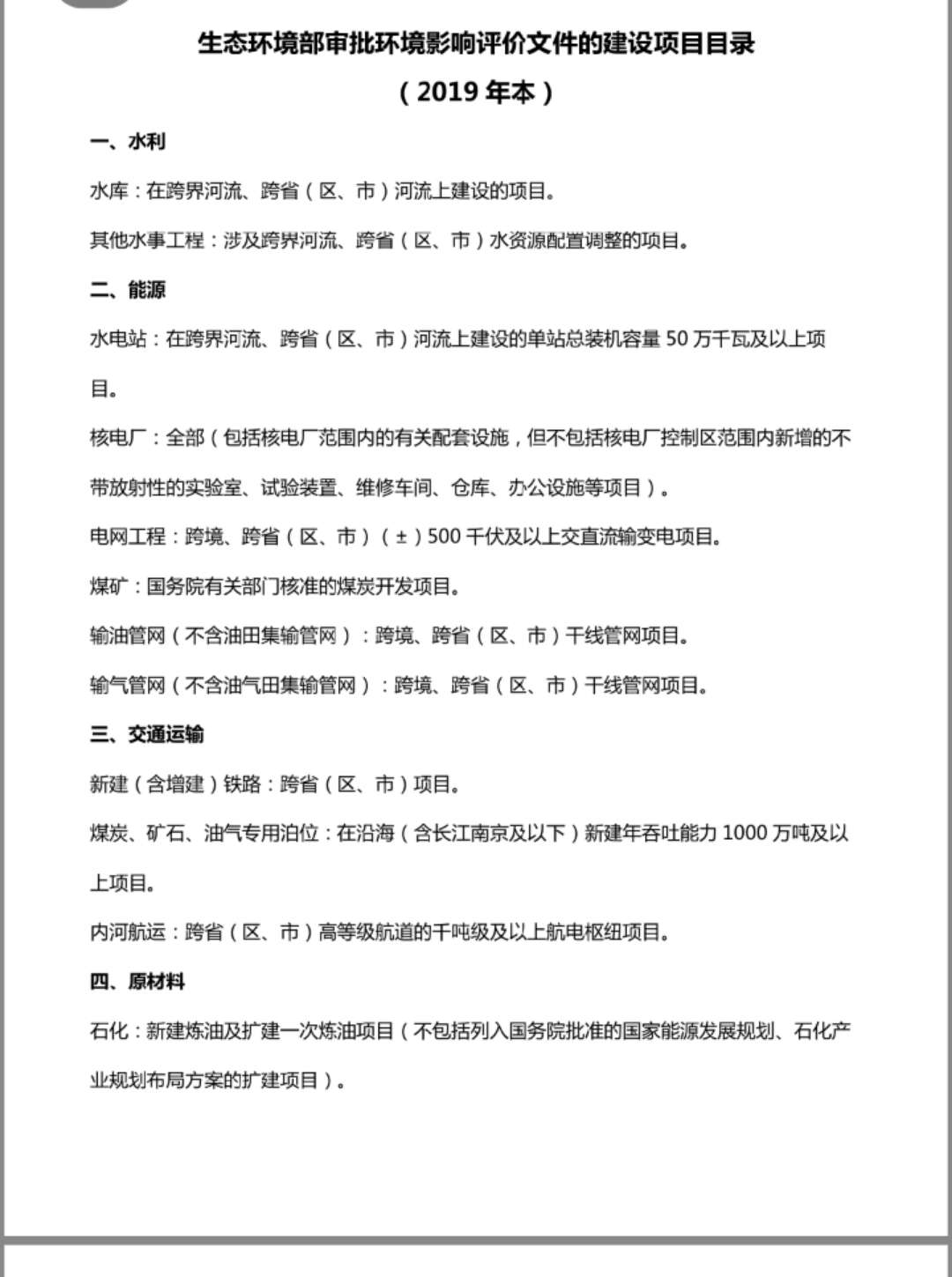 生态环境部审批环境影响评价文件的建设项目目录(2019年本)