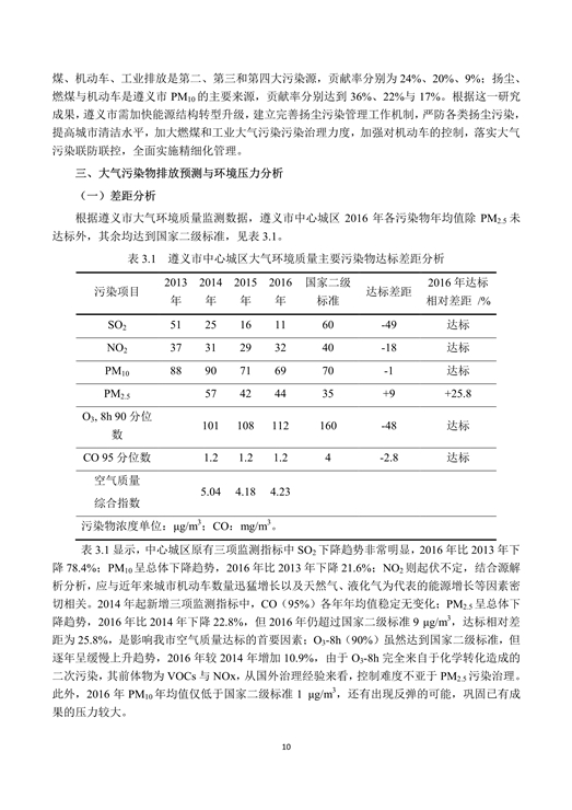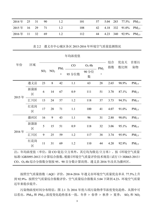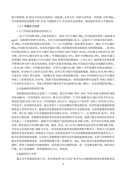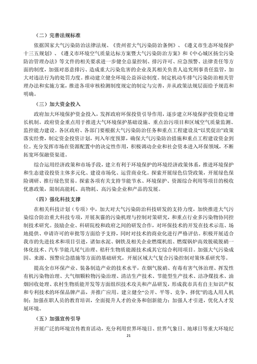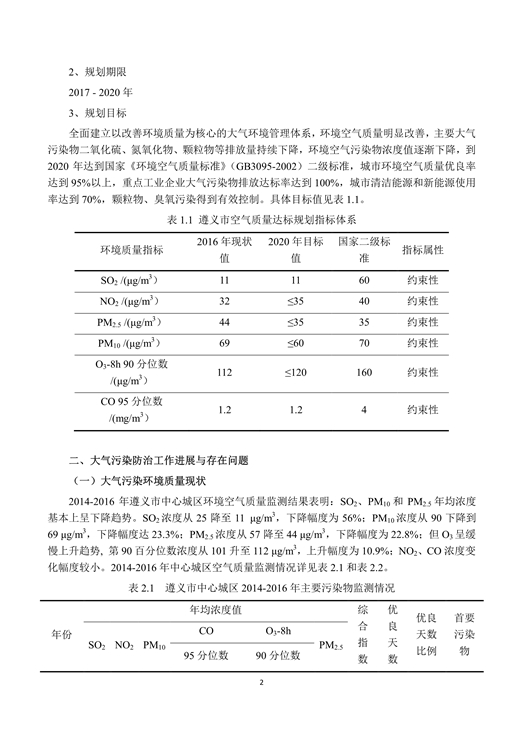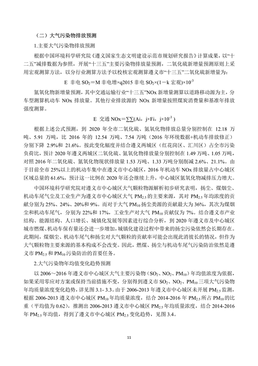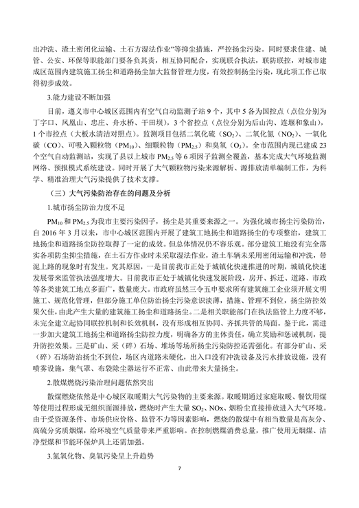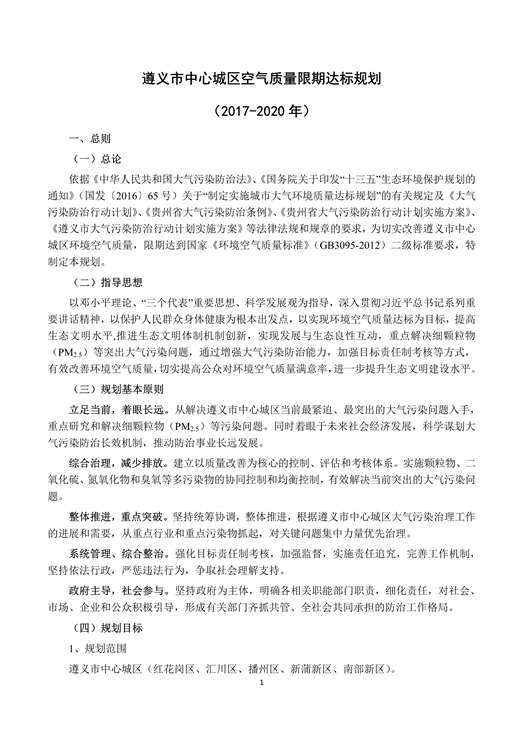 遵义市城市大气环境质量限期达标规划(2017-2020年)