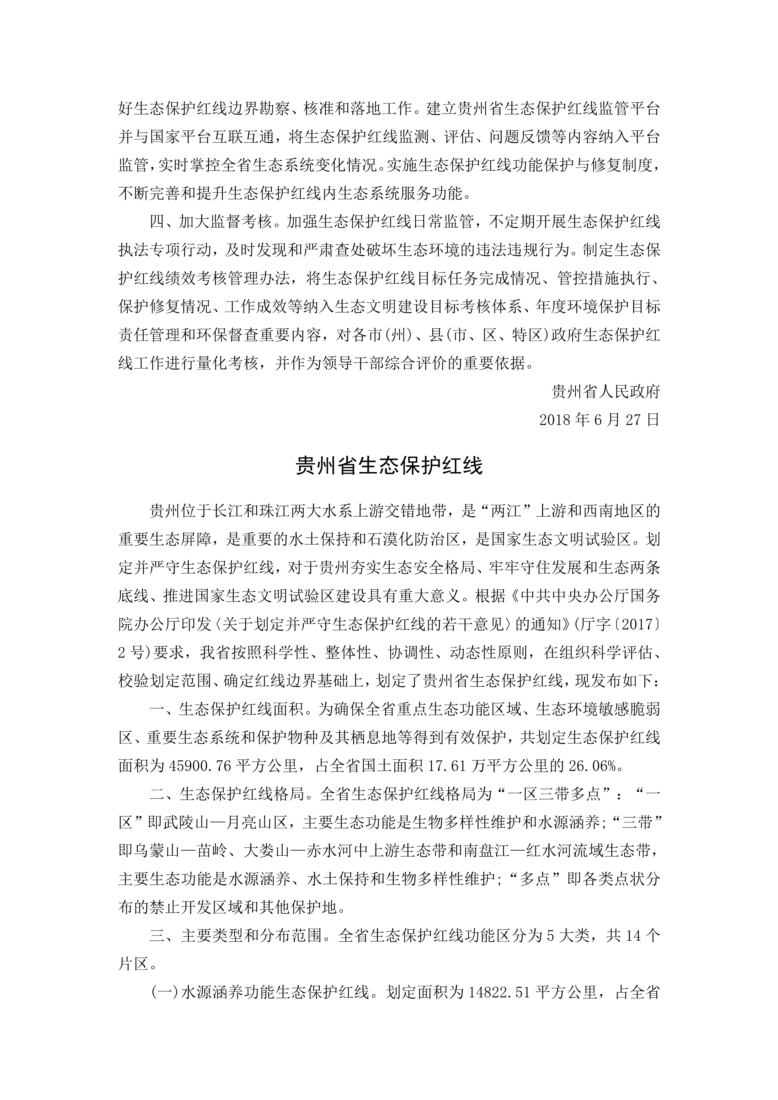 关于发布贵州省生态保护红线的通知